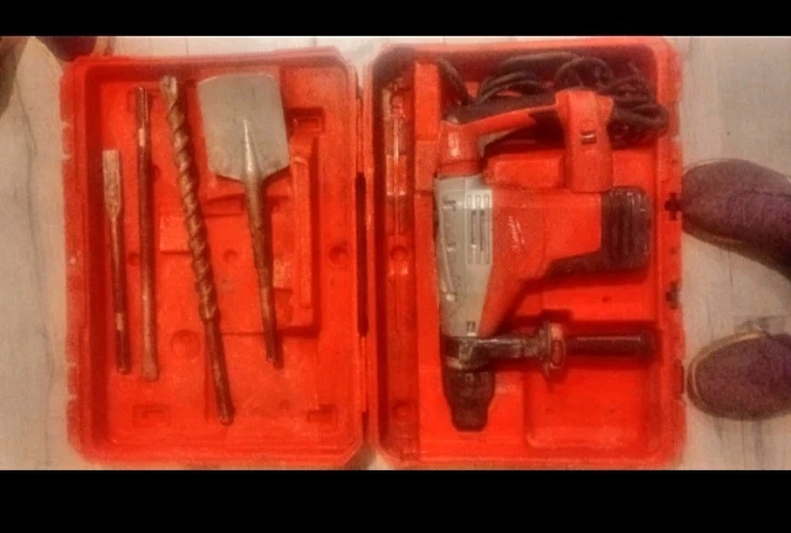 This is a Milwaukee SDS rotary hammer drill, model 545. It comes with various drill bits and a chisel bit in its case. It's a powerful tool for demo$@@№-lition and drilling into concrete. The drill even used goes for 1100 and the bits go for 250 each piece and there is 4 drill bits your saving 1300 with this buy. Selling to first come