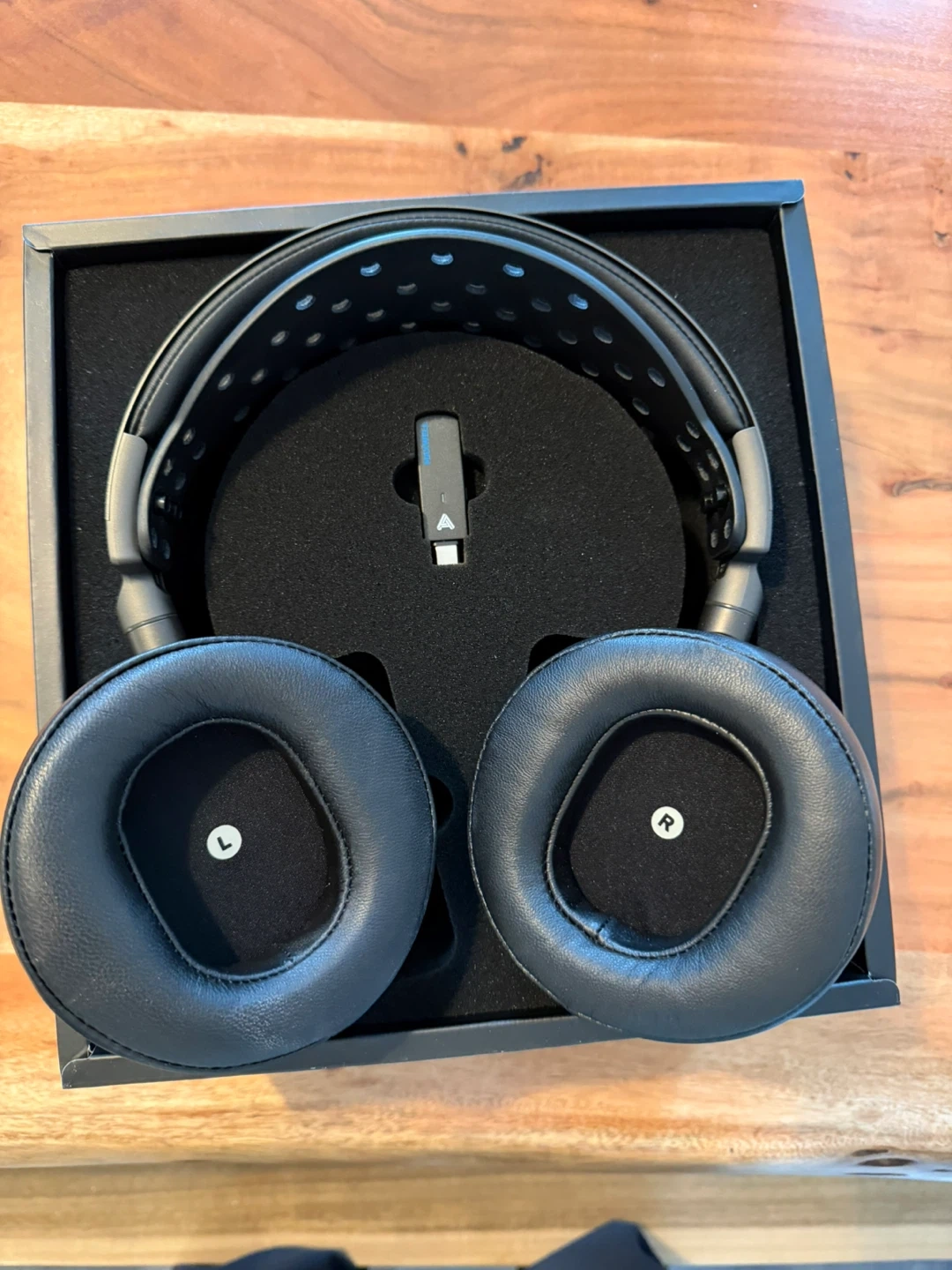 Audeze Maxwell wireless planar magnetic headphones with 90mm Planar drivers. Features AI-powered noise filter and Tempest 3D Audio. Offers 80+ hours battery life with fast charge. Includes USB-C with USB-A adapter. BONUS: Dekoni Sheepskin Earpads (used twice, $100 retail value).