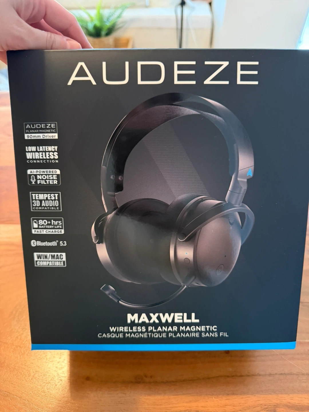 Audeze Maxwell wireless planar magnetic headphones with 90mm Planar drivers. Features AI-powered noise filter and Tempest 3D Audio. Offers 80+ hours battery life with fast charge. Includes USB-C with USB-A adapter. BONUS: Dekoni Sheepskin Earpads (used twice, $100 retail value).