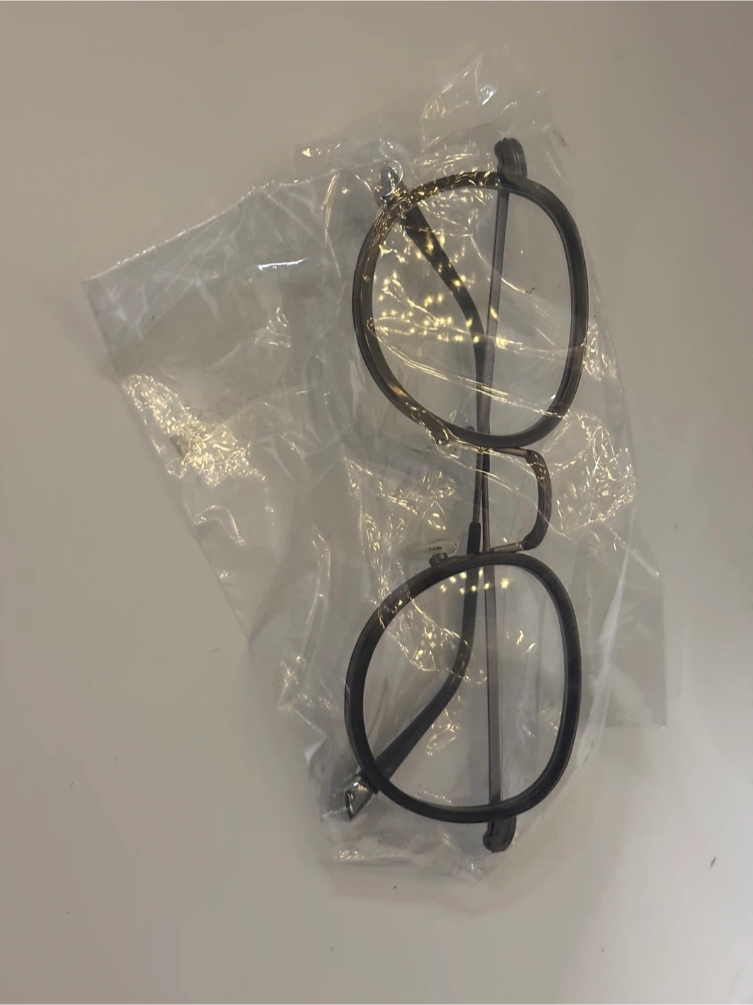 Round eyeglasses frames in a dark grey colour. The frames have a 46mm lens width and 19mm bridge size. These frames are suitable for prescription lenses. Frame only