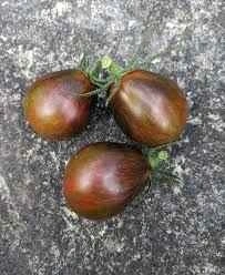 The most interesting cherry tomato as its colour patterns consisting of red, black and green stripes surely to catch everyone's attention. Slightly larger than other pear/cherry tomatoes and is a very heavy producer. Tomatoes are on the firmer side and are a little challenging to determine when they are completely ripe, but look for the red undertones to come through.