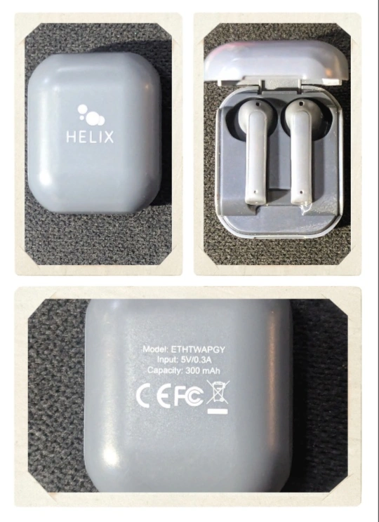 Helix ETHTWAPGY Bluetooth portable Wireless Earphones Earbuds in Gray