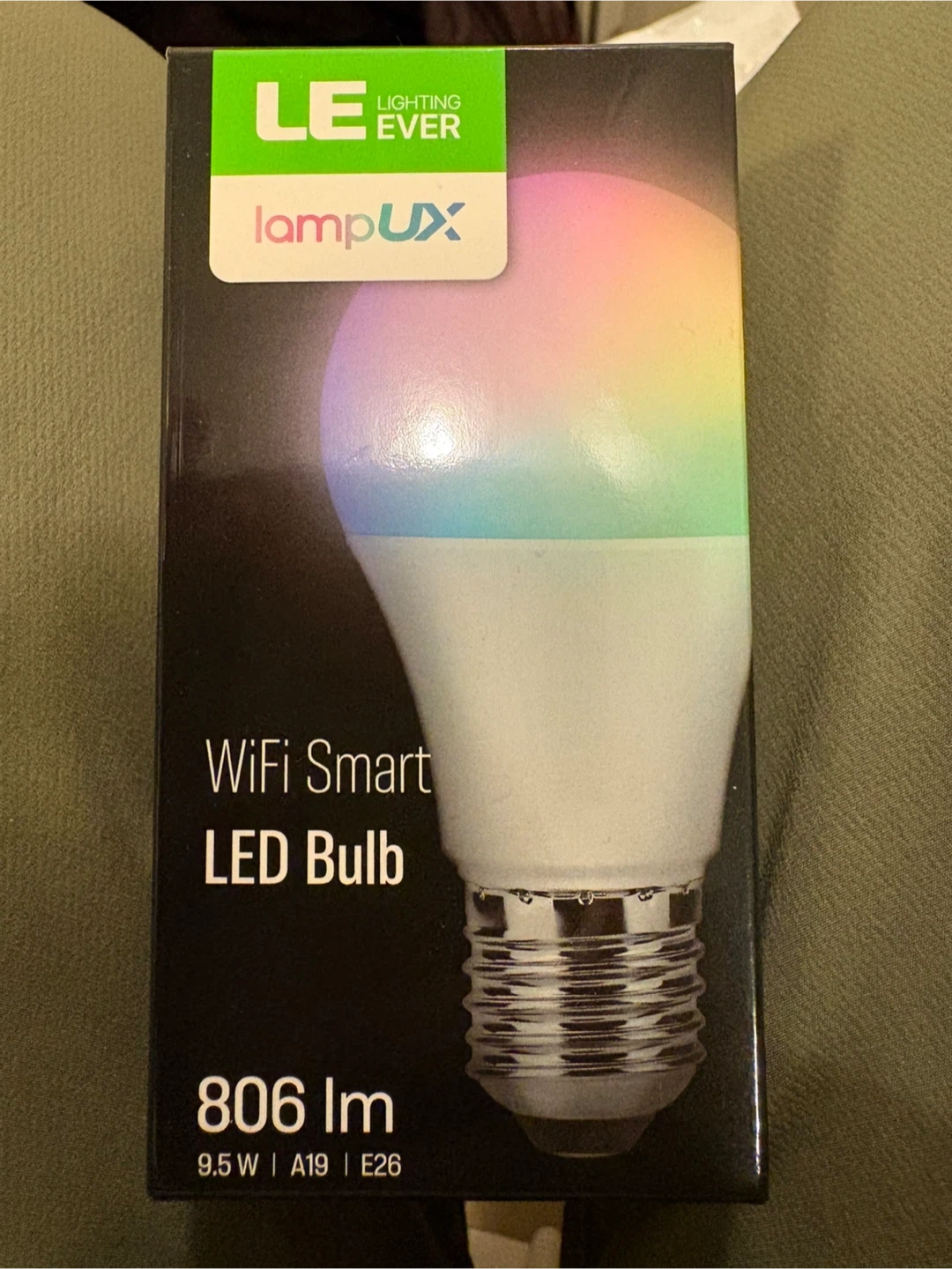 Selling a brand new Lighting EVER lampUX WiFi Smart LED Bulb! It's still in its original packaging and ready to brighten up your space. The bulb is a WiFi Smart LED Bulb with 806 lm, 9.5 W, A19, and E26. Box included