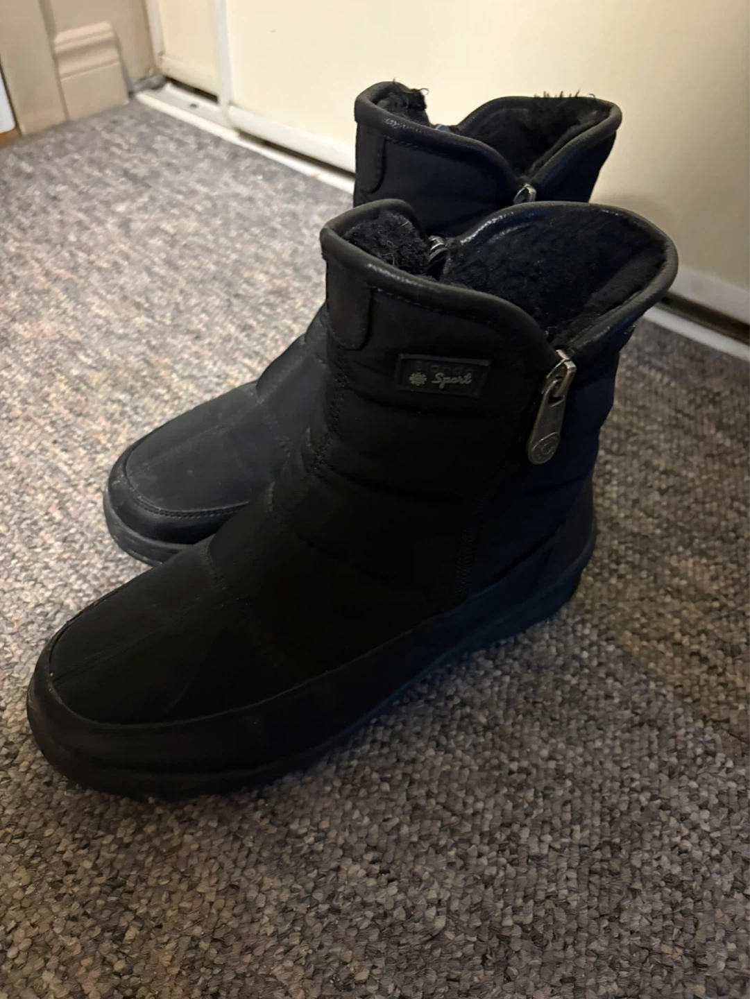 1 / 31 / 3Buy & SellBlack Winter BootsBlack Winter Boots$30Black winter boots with a cozy faux fur lining and side zipper closure. They have a grippy rubber sole for traction.ConditionLike newSize7BrandSportWHERE TO MEETCheck LocationView MapSELLERverifiedTayClinton650 reviews0 chats·0 favorites·5 viewsSEND CHAT TO SELLERHi Tay! I’m interested in your listing.Hi Tay! I’m interested in your listing.Get the Karrot app to chatSign In to chat