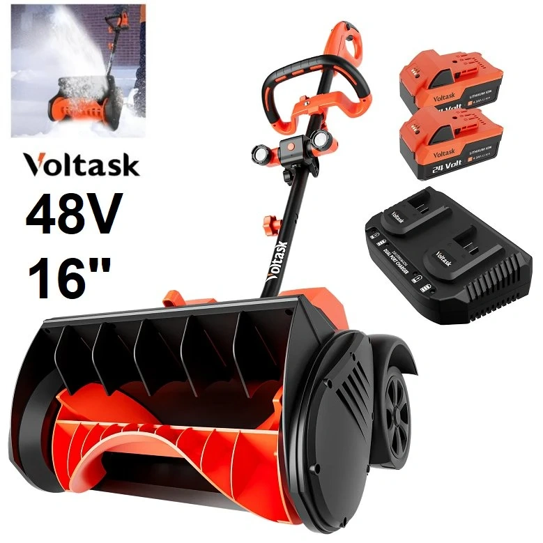 Clear your driveway with this Voltask 48V cordless snow shovel, designed with a 16-inch clearing width and battery-powered convenience. Please note, this item is missing the 2 batteries and has some light marks or scratches from previous use. Despite these cosmetic imperfections, it's ready to tackle light to moderate snowfall with ease. βοΈπͺ