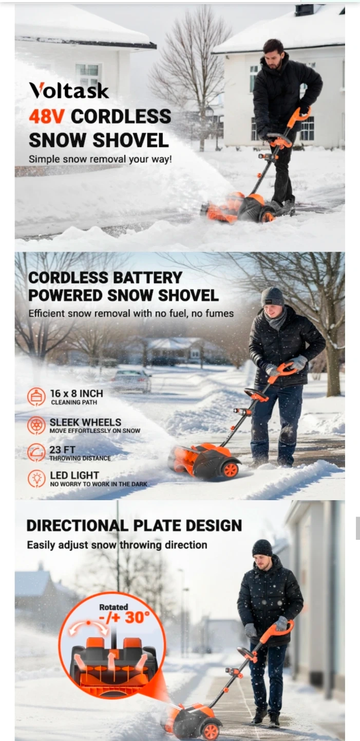 Voltask Cordless Battery Operated Snow Shovel βοΈπι²