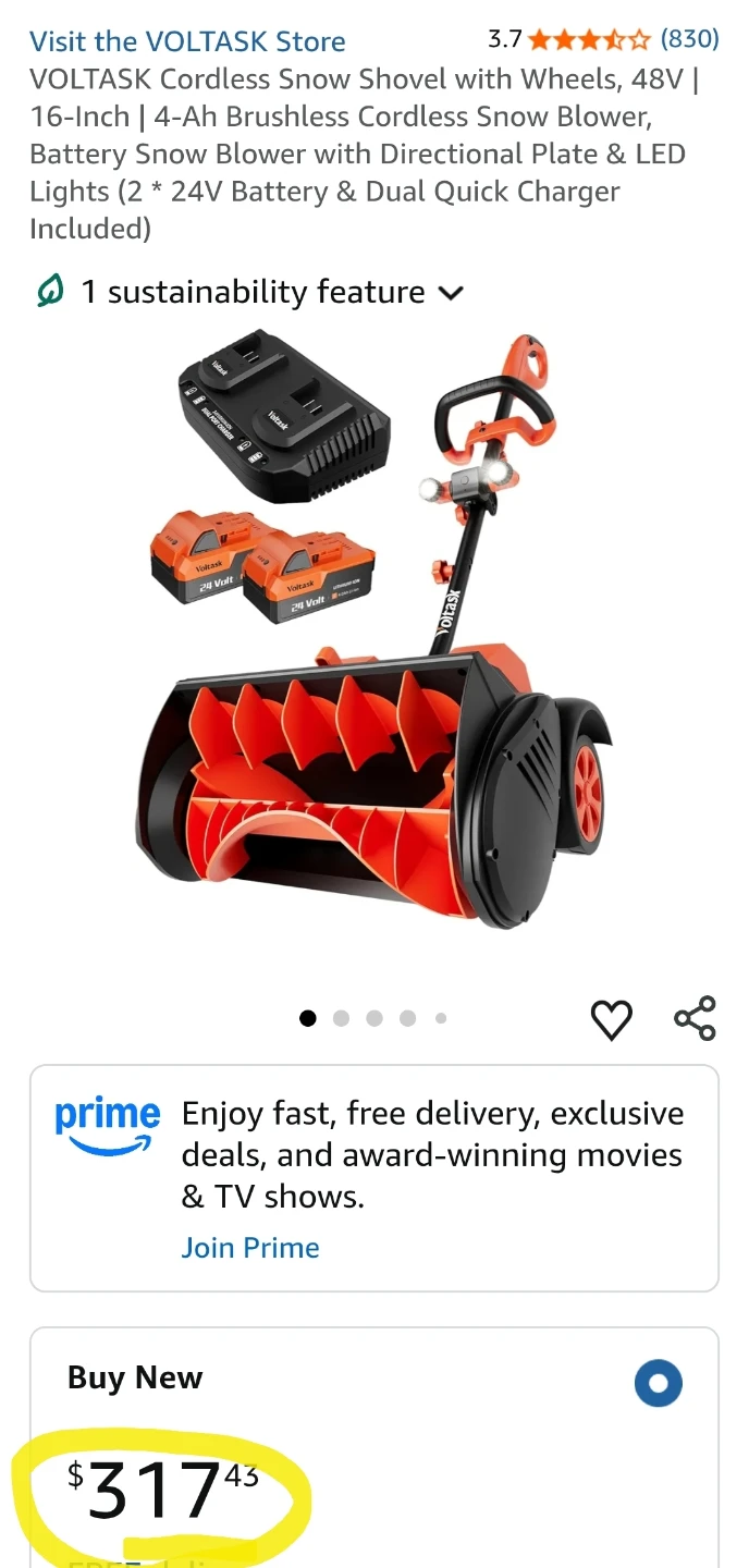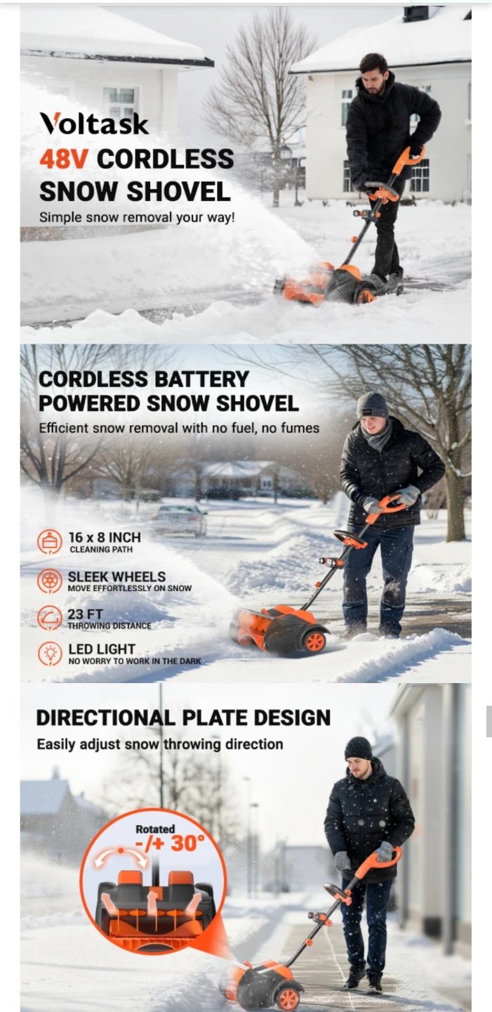 Voltask Cordless Battery Operated Snow Shovel βοΈπι²