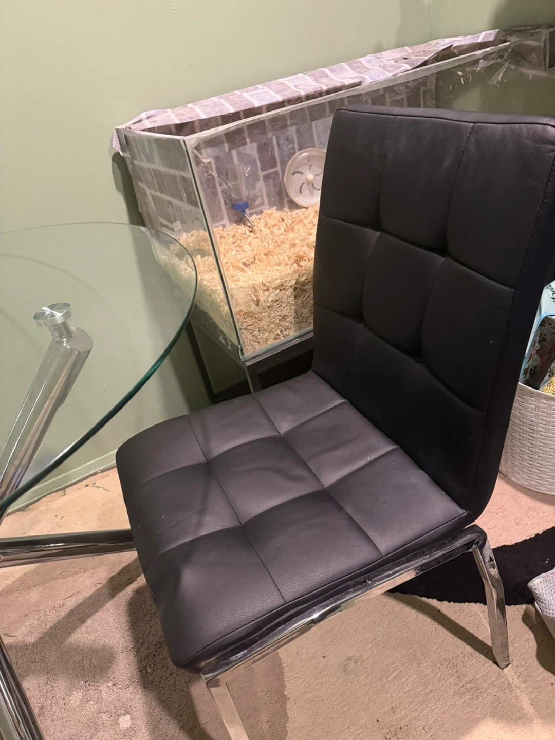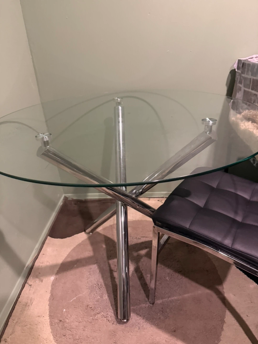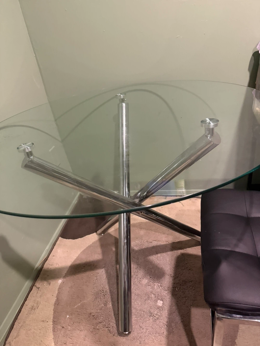Selling a glass top round dining table with chrome legs. The table is in good condition and would be a great addition to any dining room or kitchen! Come with 2 free chairs