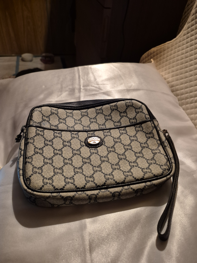 Pre-owned Vintage GG Plus Travel Pouch. Features the iconic GG Plus monogram pattern. Small and compact design and includes a wrist wrap. Price reflect the condition. Perfect vintage collection. Authentic