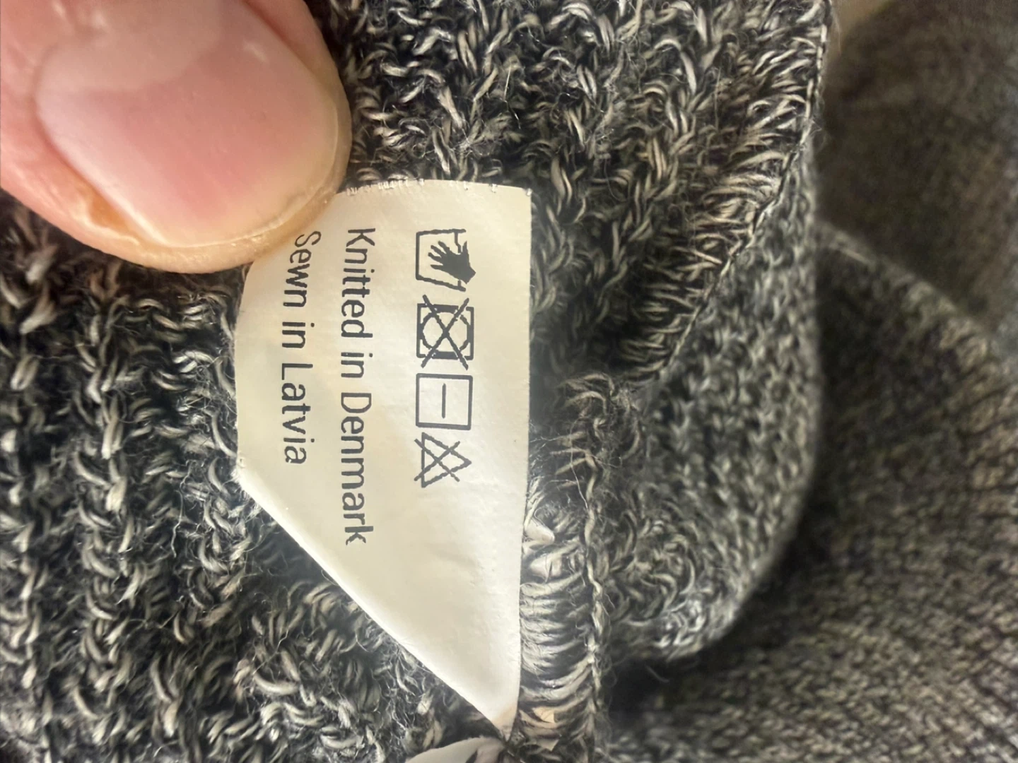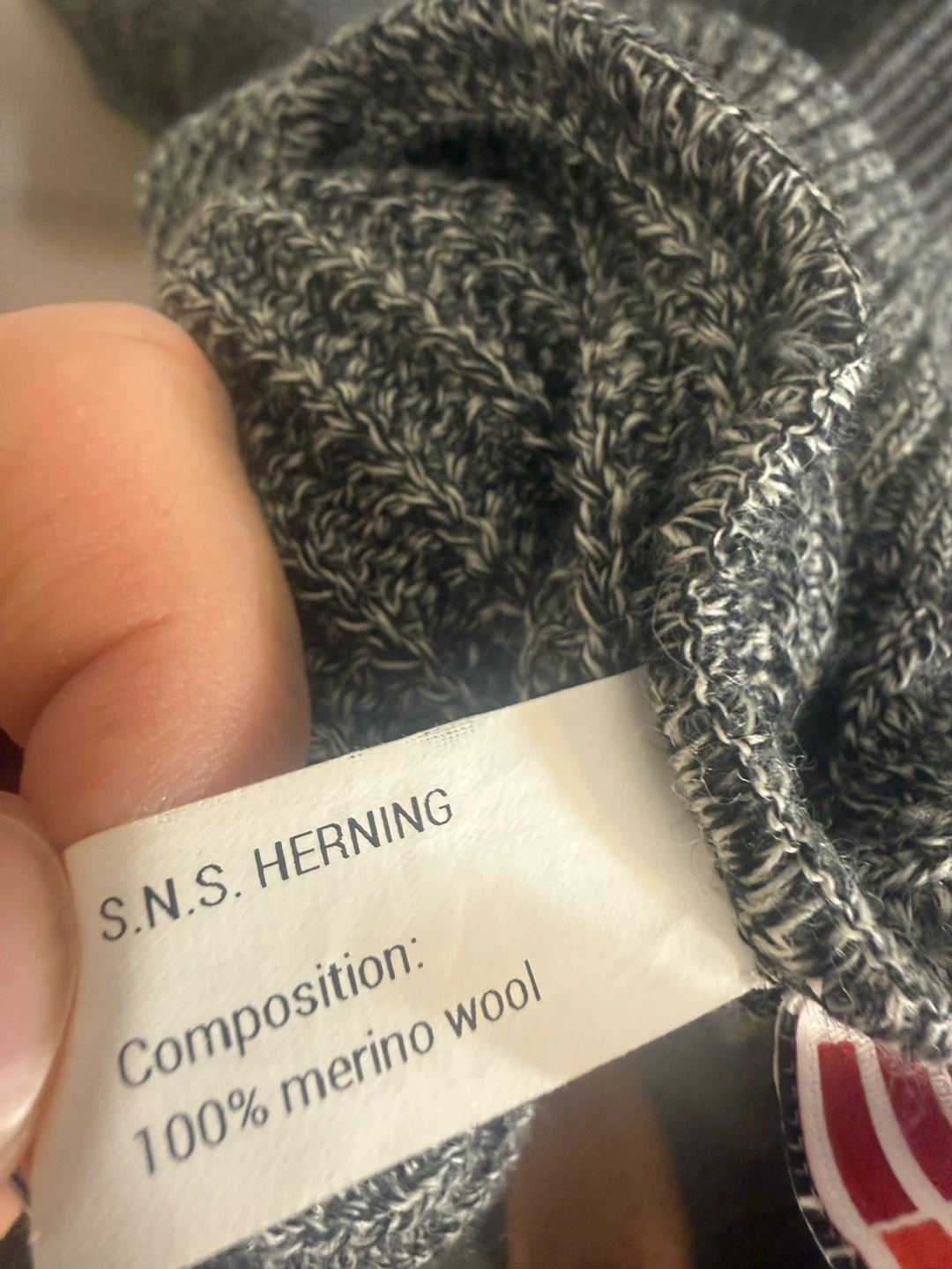 This S.N.S. Herning sweater is made from 100% merino wool. It's knitted in Denmark and sewn in Latvia. Comes in a size large.
