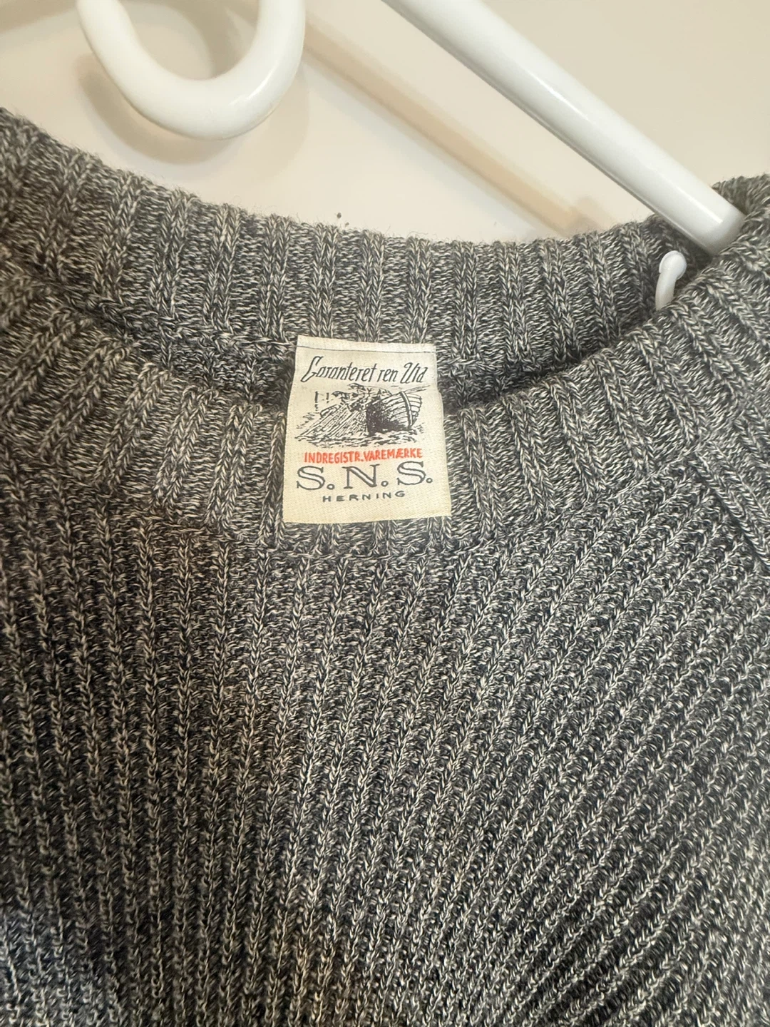This S.N.S. Herning sweater is made from 100% merino wool. It's knitted in Denmark and sewn in Latvia. Comes in a size large.