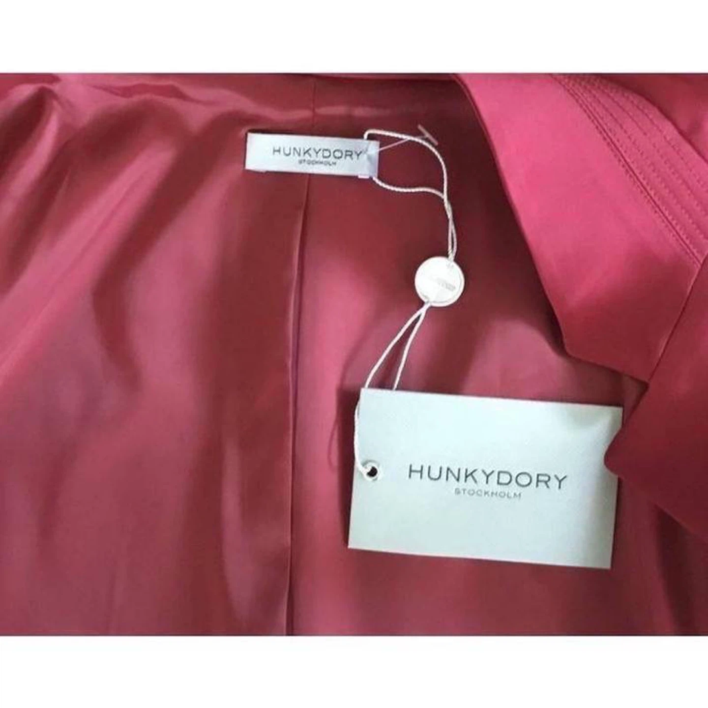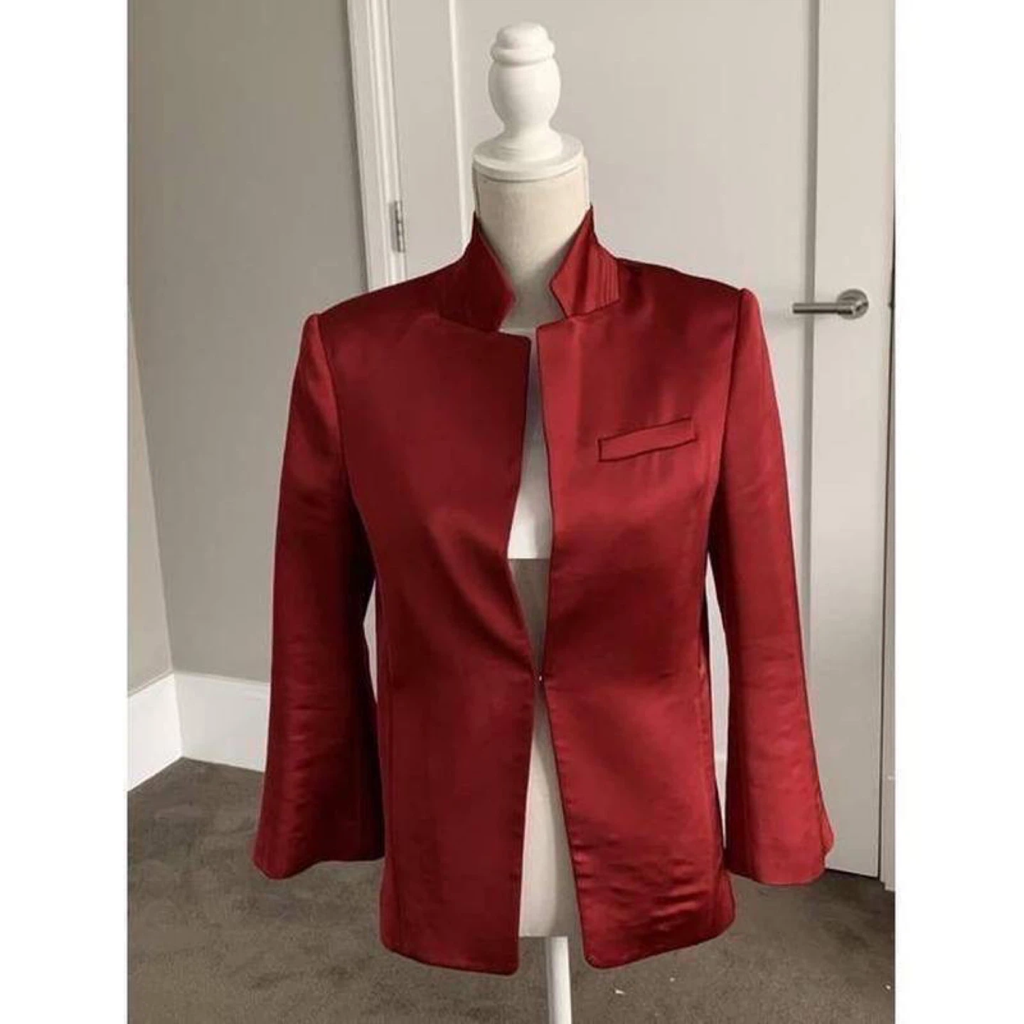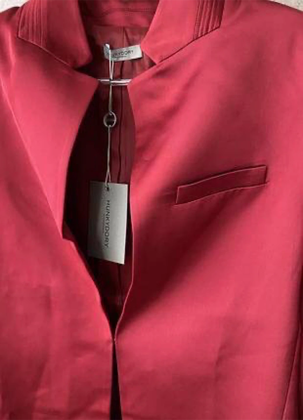 ✨ I’m doing a big declutter of my home, cosmetics, and clothing. Pick-up at St. George, Sheppard West, or any station between St. George and Victoria Park. Shipping available via Canada Post. ✨ ✅ New item with tag Elegant blazer from Hunkydory in a rich red color. Made from smooth satin fabric, it features a modern collarless cut and a stylish minimalist design. Easy to style with both casual outfits (T-shirt + jeans) and more classic looks. 📏 Size: M 🎨 Color: Red 💎 Original retail price on the website — €245.