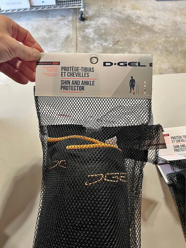 Soccer shin and ankle protectors. NEW in the package. Can also be used for ball hockey. Purchased at an auction with an assorted lot and I don't need them. 10 Medium, 3 Large. Retail for about $40-$45 + tax. Selling for $25/pair. Buy 2 or more pairs, pay $20/pair. Cash only. Located in Waterloo, a few minutes from RIM Park.