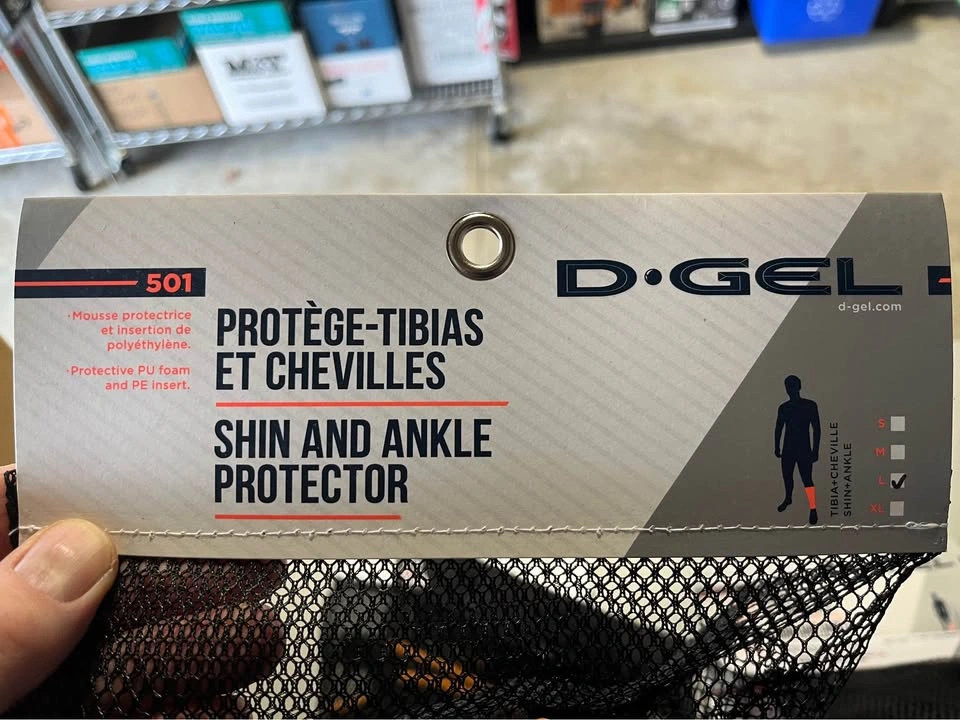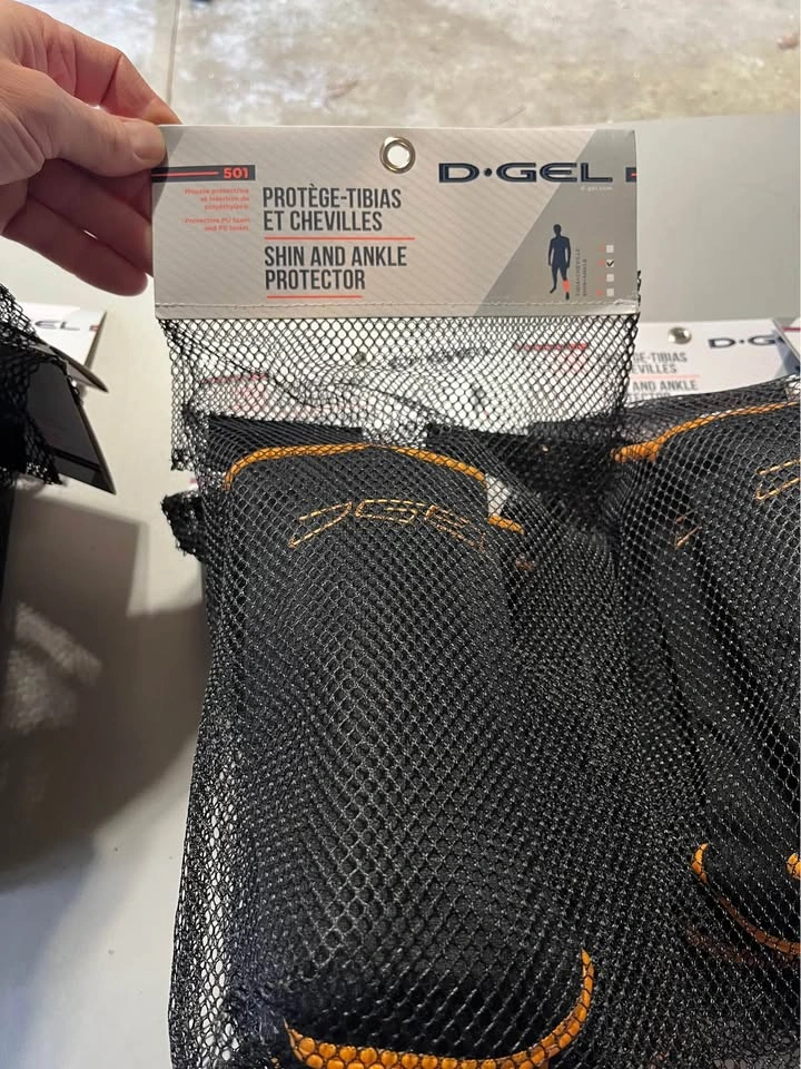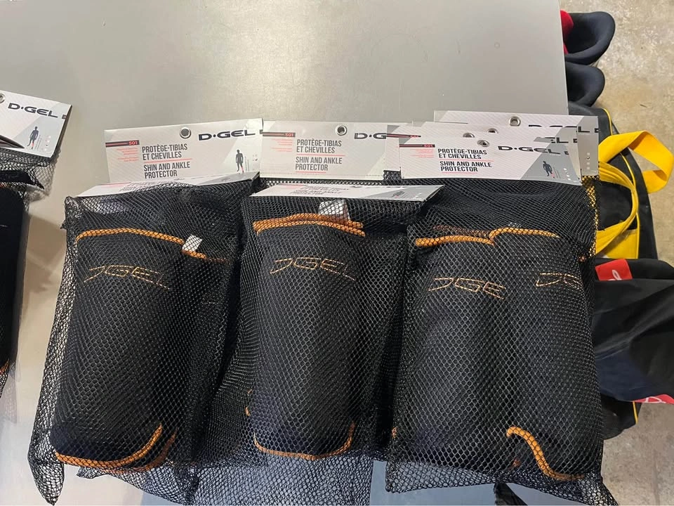 Soccer shin and ankle protectors. NEW in the package. Can also be used for ball hockey. Purchased at an auction with an assorted lot and I don't need them. 10 Medium, 3 Large. Retail for about $40-$45 + tax. Selling for $25/pair. Buy 2 or more pairs, pay $20/pair. Cash only. Located in Waterloo, a few minutes from RIM Park.