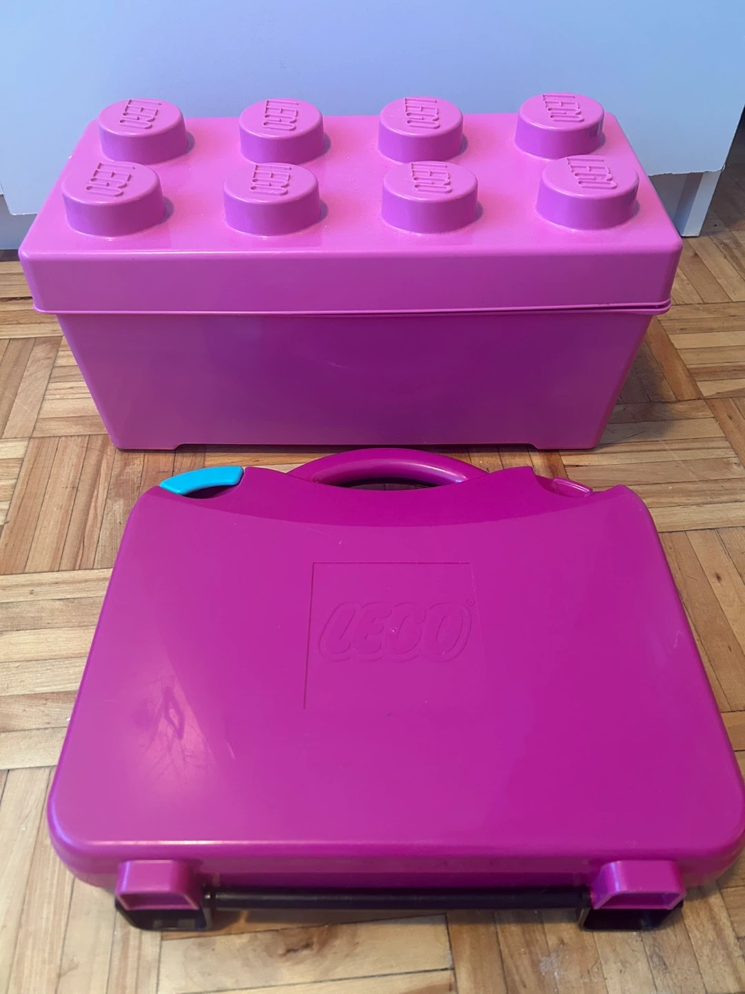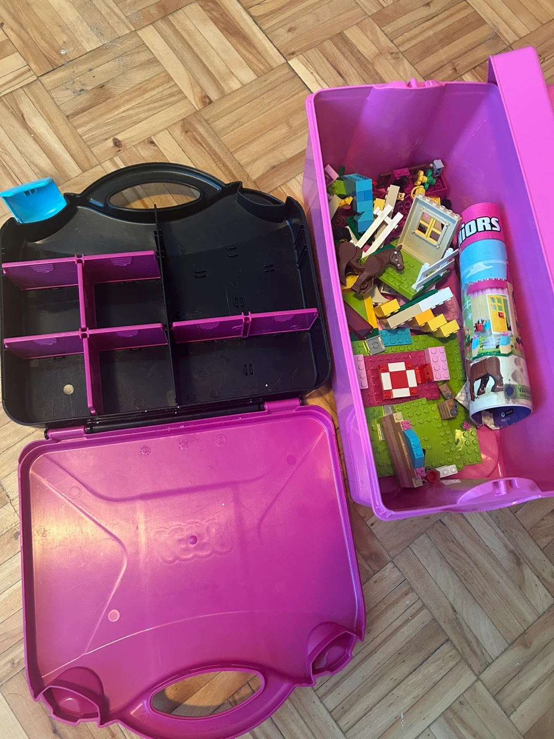 LEGO Storage Bin, divider case, and LEGO friends ranch set