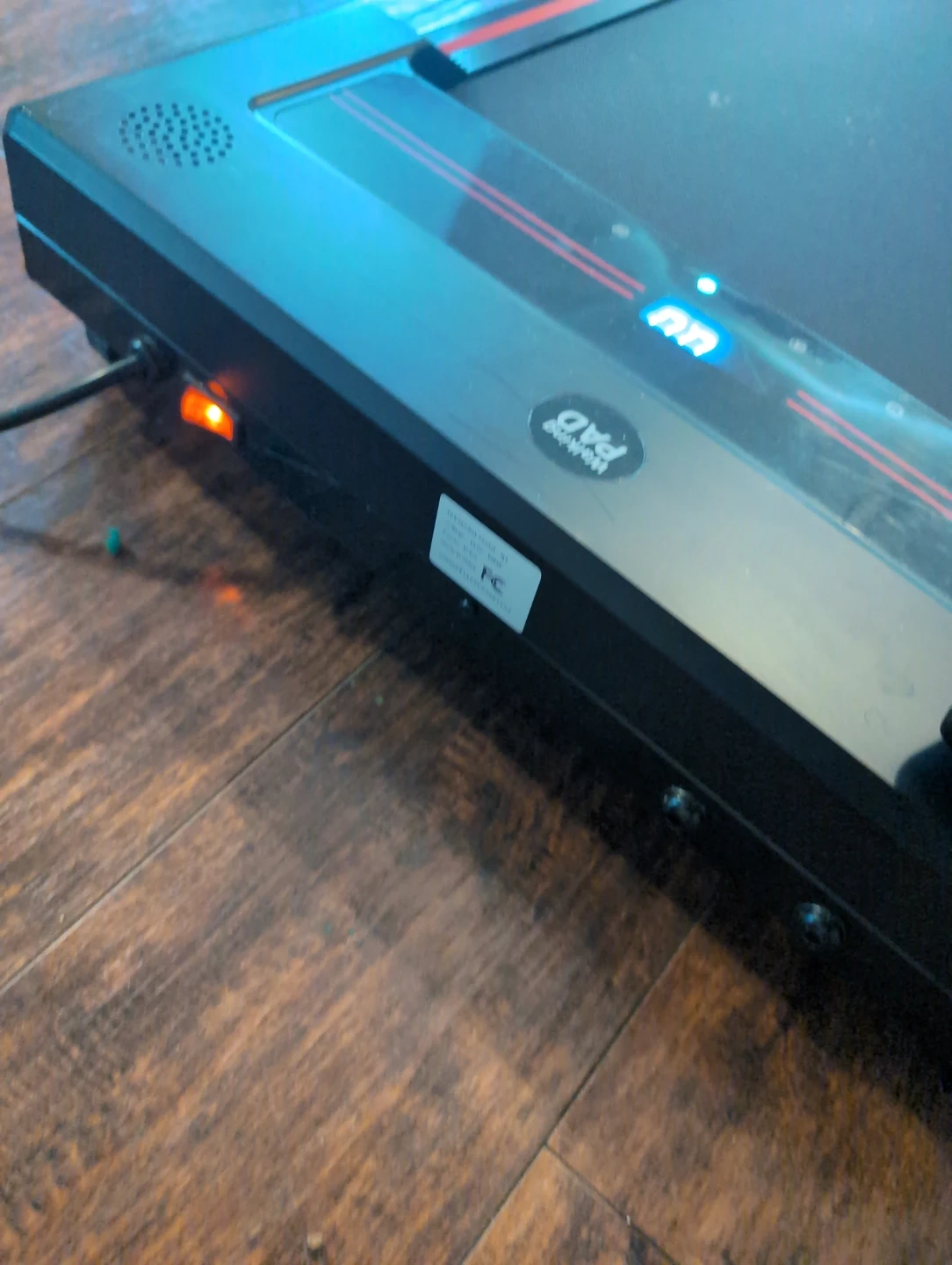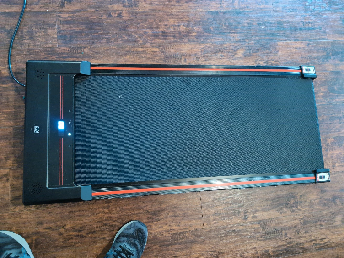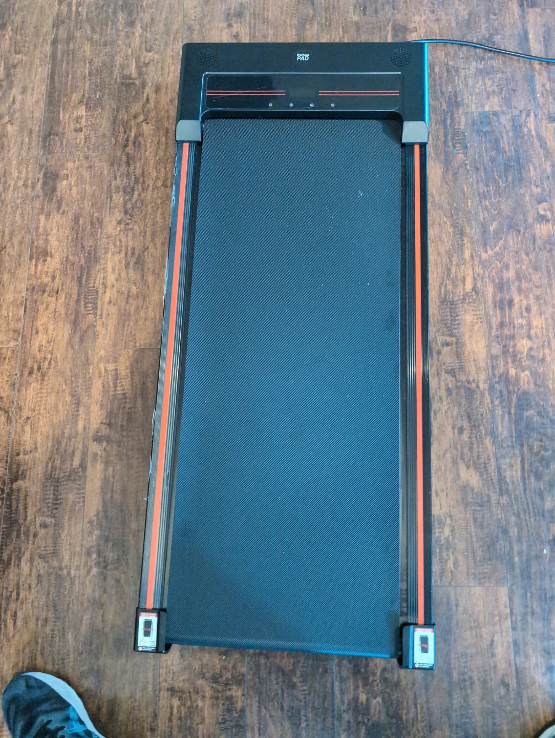 This is a portable walking pad treadmill. It comes with a remote for speed control.