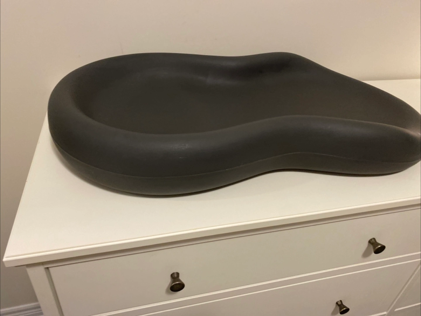 Grey changing pad. Shaped for safety. A practical addition to any nursery. This item is perfect for calming a little one. Barely used. Cleaned and sanitized Retails for $250