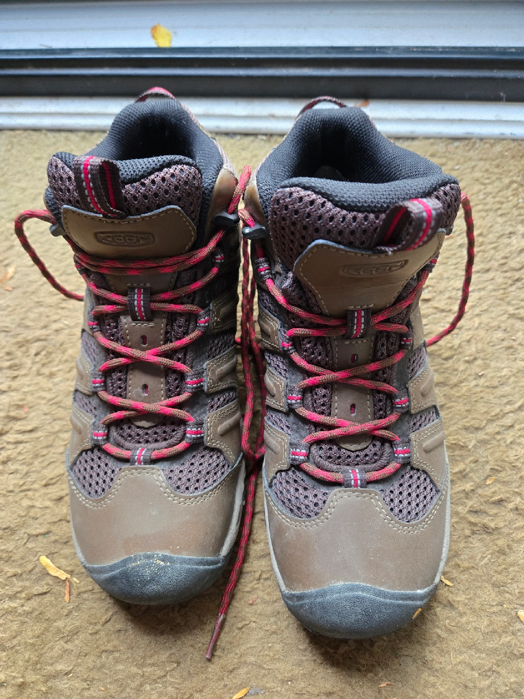 20Selling a pair of Keen waterproof hiking boots in size 7. They're in good condition and ready for your next outdoor adventure! The boots are a nice brown colour with red laces.