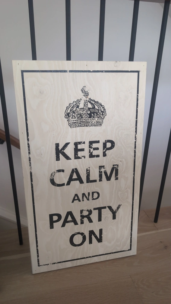 62Spruce up your space with this charming wooden sign from Twelve Timbers (made in the USA)! It features the classic "Keep Calm and Party On" message with a crown design. Perfect for adding a touch of fun to any room. 15.748 x 28 inches