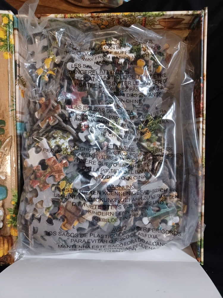 35500 piece jigsaw puzzle in collectible box. Spring Front Porch theme. Sealed package holding puzzle pieces