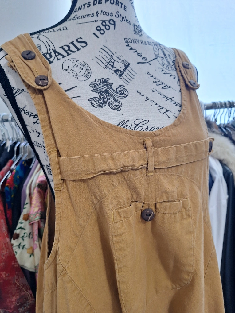 A mustard coloured jumpsuit in great condition! It features a button-up front and a relaxed fit. Perfect for a casual day out or layering up for cooler weather