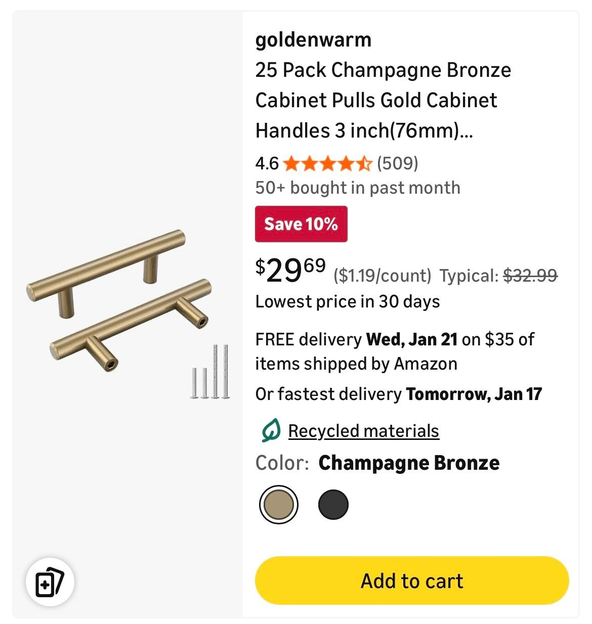 Goldenwarm Cabinet Pulls - 25 Pack