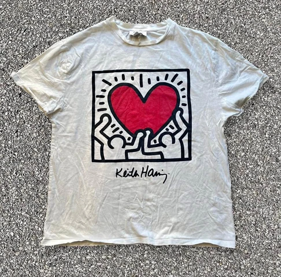 Keith Haring Heart Art T Shirt White Size M