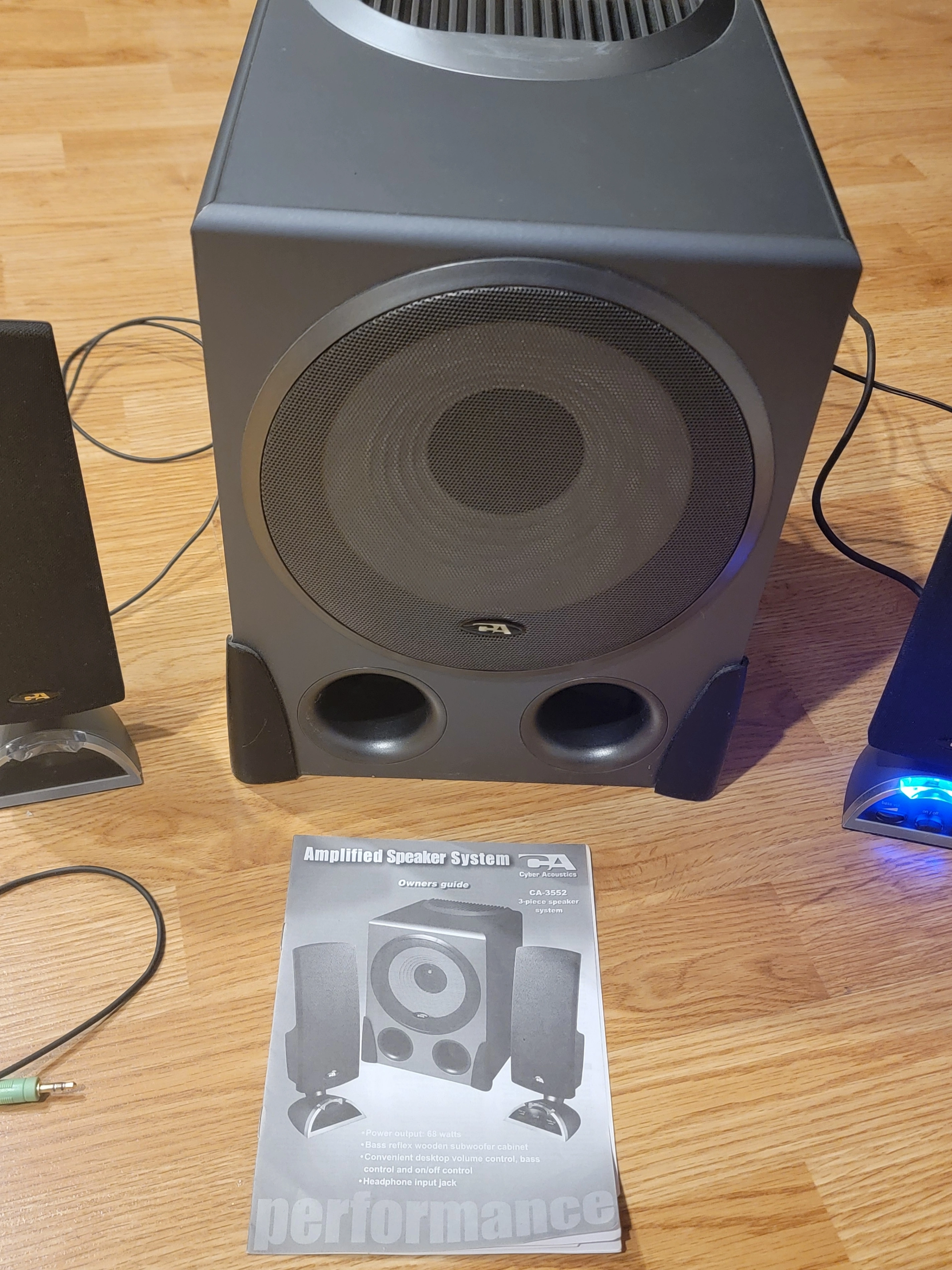 Buy & SellCyber Acoutics CA-3552 Speaker System πCyber Acoutics CA-3552 Speaker System π$35Power Output: 68 Watts, Bass reflex wooden subwoofer cabinet, convenient desktop volume control, bass control and on/off control, headphone input jackBrandCyber AcousticsWHERE TO MEETMcDonalds-1256 Eglinton Ave W, near Creditview Road and Eglinton Ave WestView MapSELLERverifiedLaksafanEast Credit982 reviews0 chatsΒ·0 favoritesΒ·19 viewsSEND CHAT TO SELLERHi Laksafan! Iβm interested in your listing.Hi Laksafan! Iβm interested in your listing.Get the Karrot app to chatSign In to chat