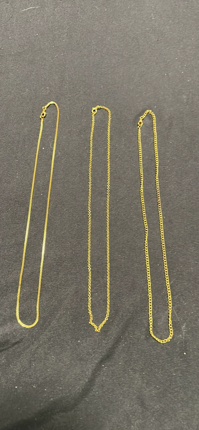 Buy & SellSet of 3 Gold Necklaces 14k Gold platedSet of 3 Gold Necklaces 14k Gold plated$14Three gold-tone necklaces are included. Styles vary, featuring different chain links. They're gold-coloured and have a 14k gold platedConditionNewSize16”WHERE TO MEETCheck LocationView MapSELLERverifiedReubenTown Centre600 reviews0 chats·0 favorites·32 viewsSEND CHAT TO SELLERHi Reuben! I’m interested in your listing.Hi Reuben! I’m interested in your listing.Get the Karrot app to chatSign In to chat