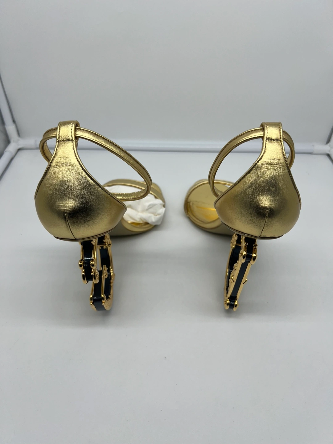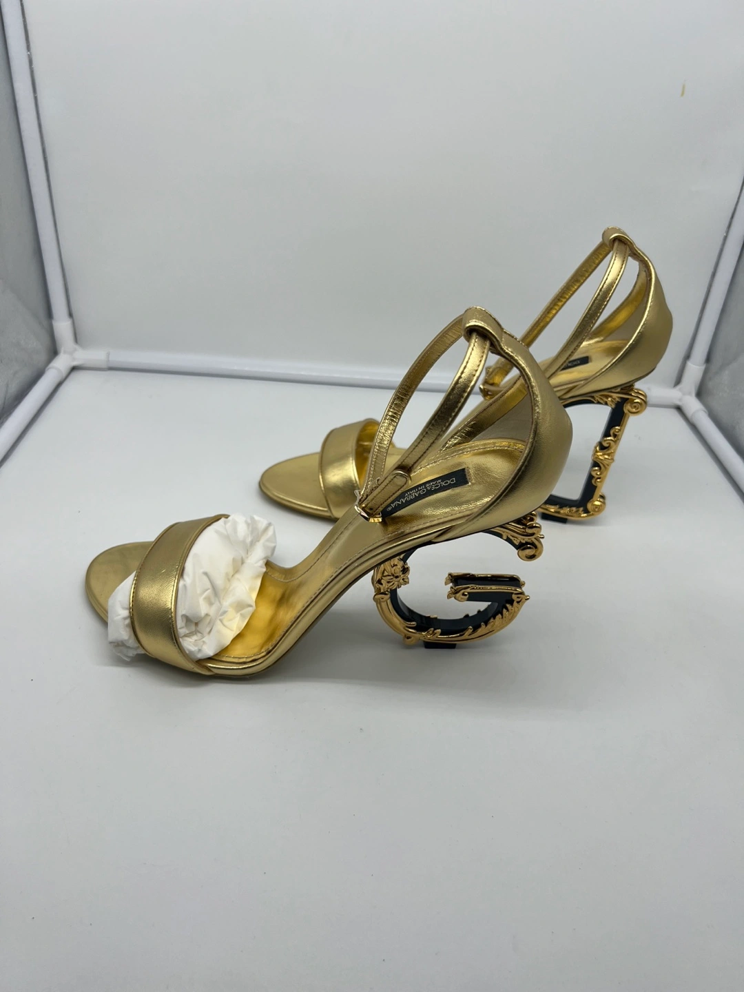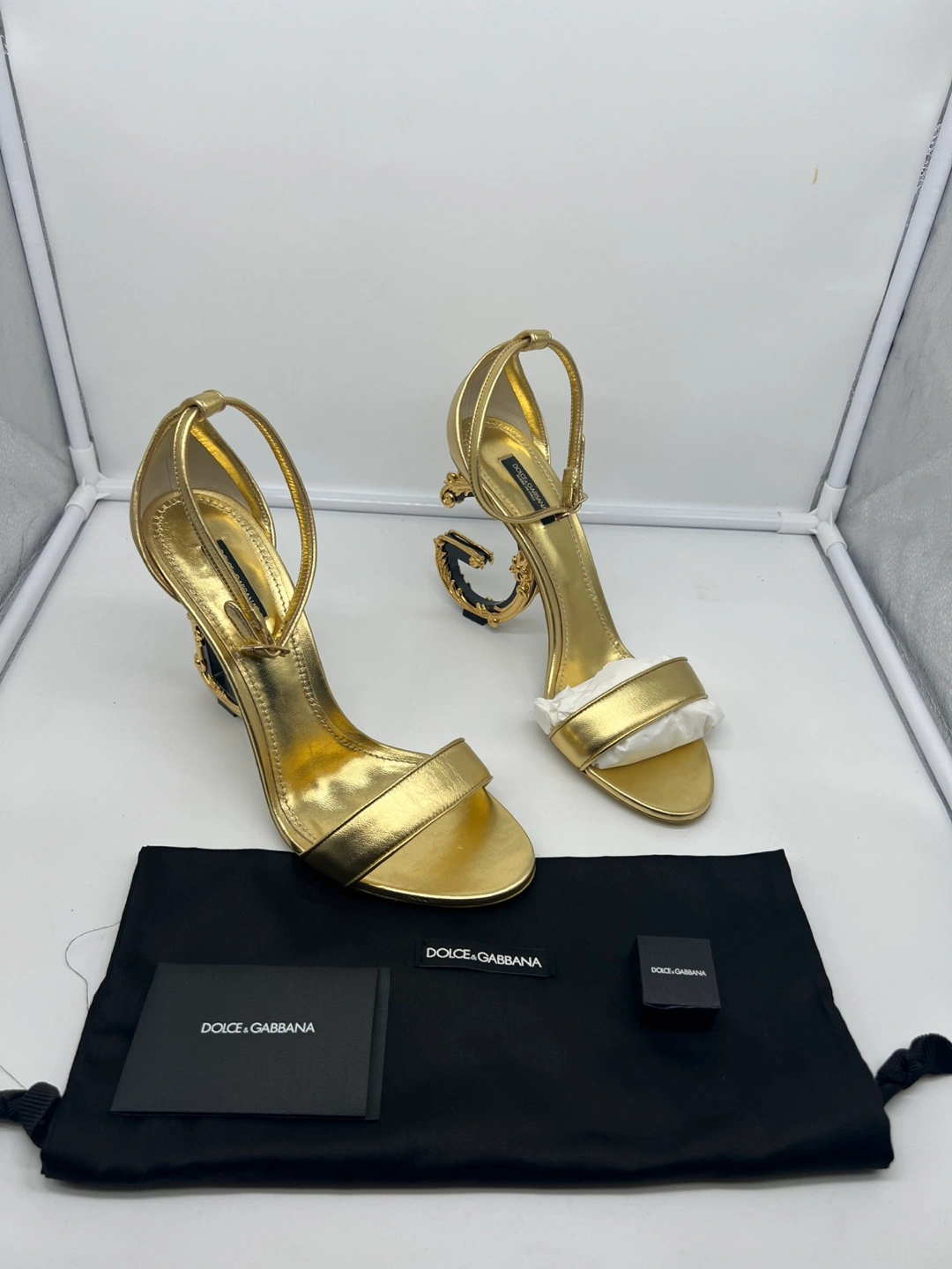 Dolce & Gabbana Keira 105 Baroque Gold Leather Heels sz 41