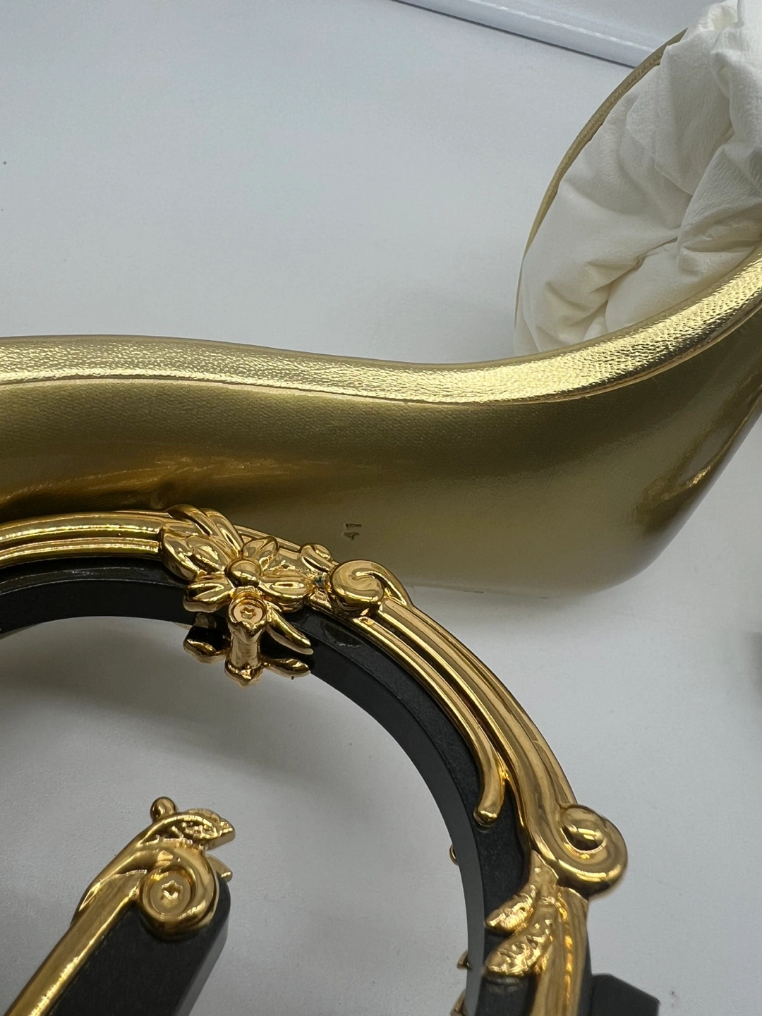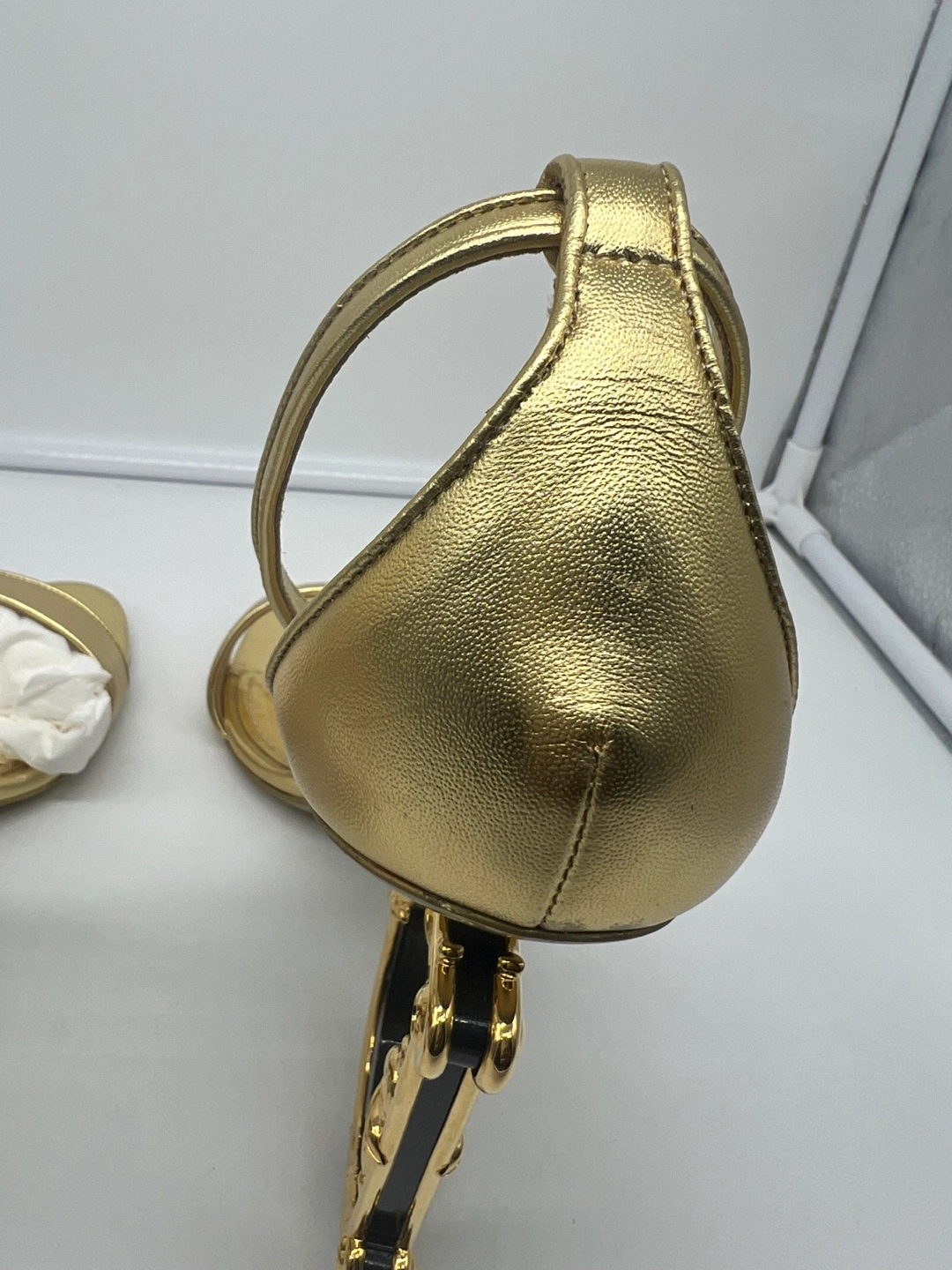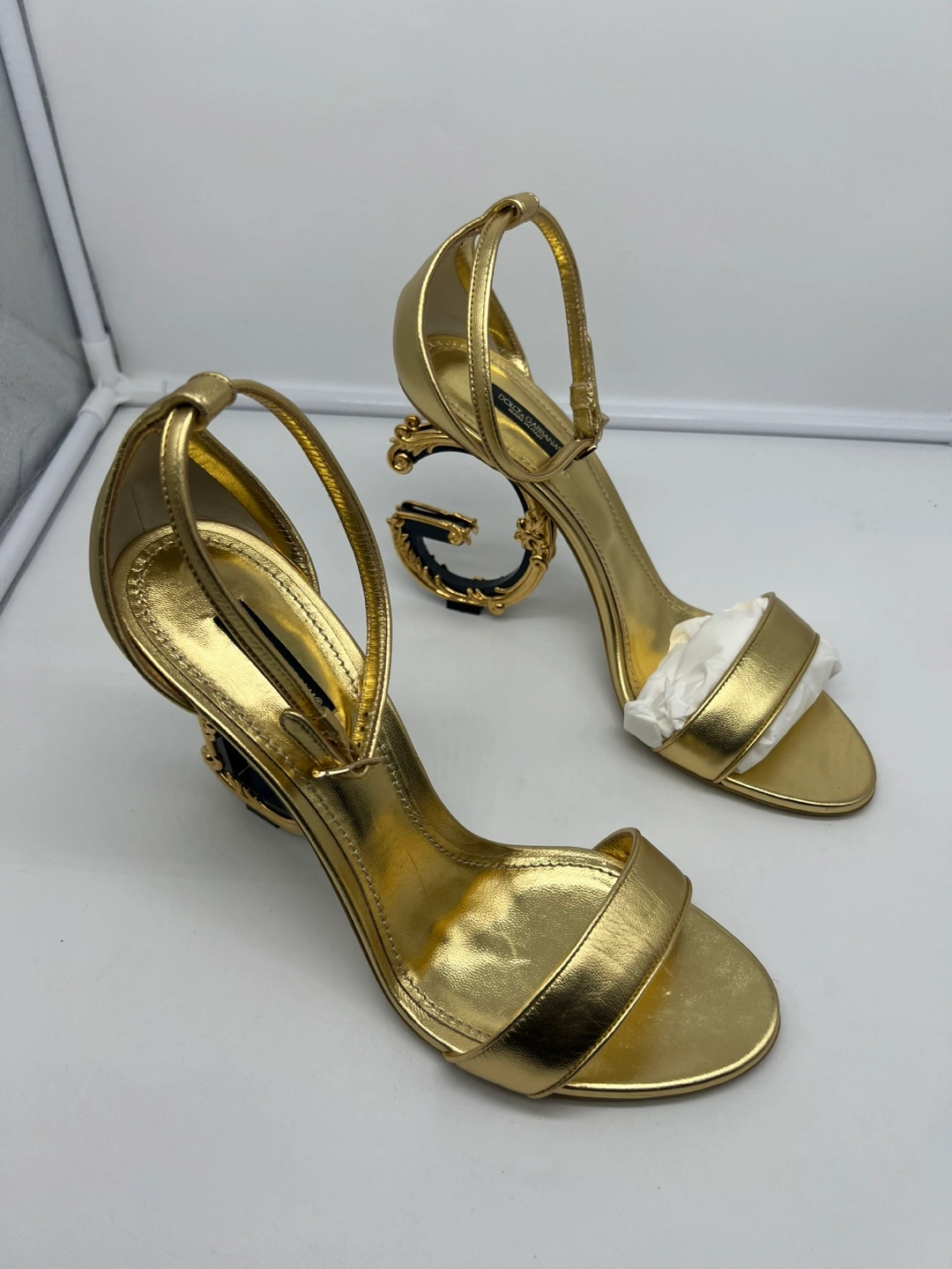 Dolce & Gabbana Keira 105 Baroque Gold Leather Heels sz 41