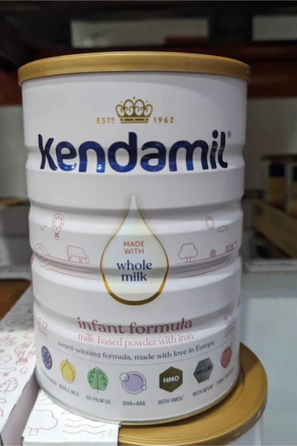 10Selling a can of Kendamil infant formula. It's a milk-based powder with iron. The expiration date is 2027 January 02. Made with whole milk and award-winning formula, made with love in Europe