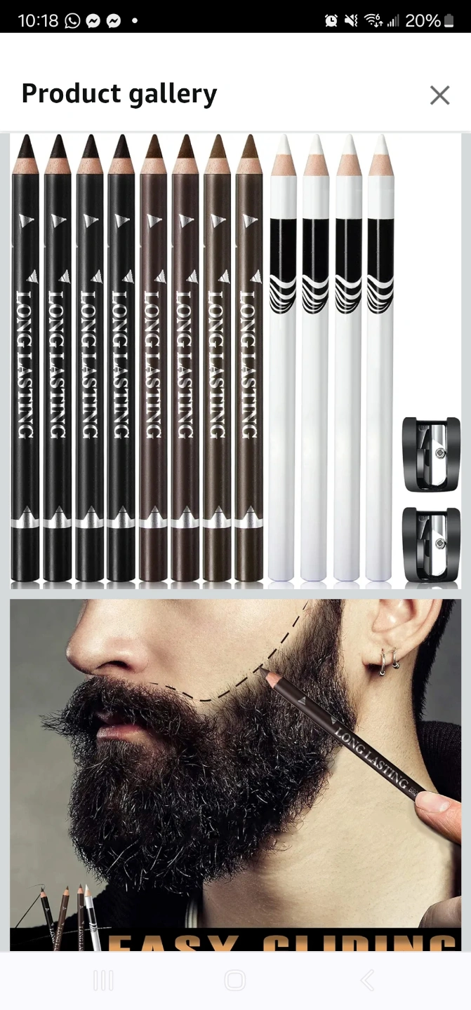 Set of 12 long-lasting barber. all are color White. Easy gliding formula. Perfect for beards, sideburns, and eyebrows. Two-in-one eyeliner and barber pencil.