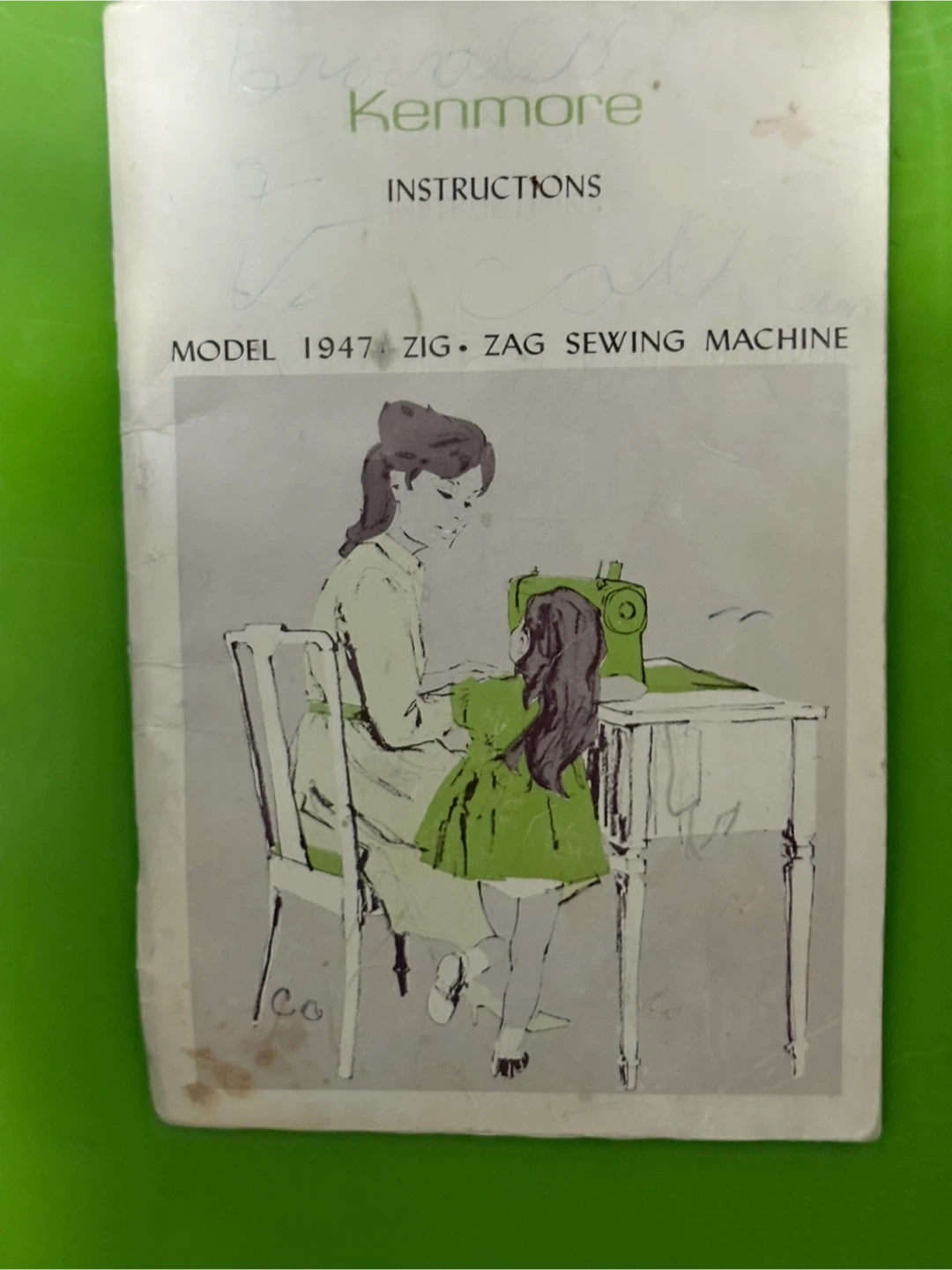 Selling a vintage working Kenmore 1947 Zig Zag sewing machine. It comes with the foot pedal and instruction manual. A great vintage machine for all your sewing needs. Manual has some obvious wear and tear due to this being loved by a family with involved children, but still fully readable and useful. Comes with original bobbin