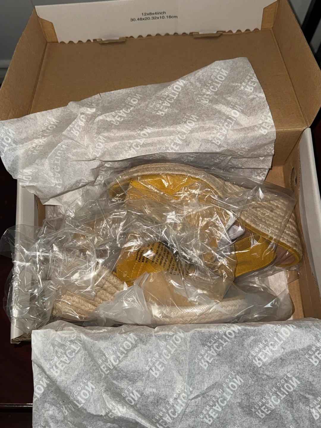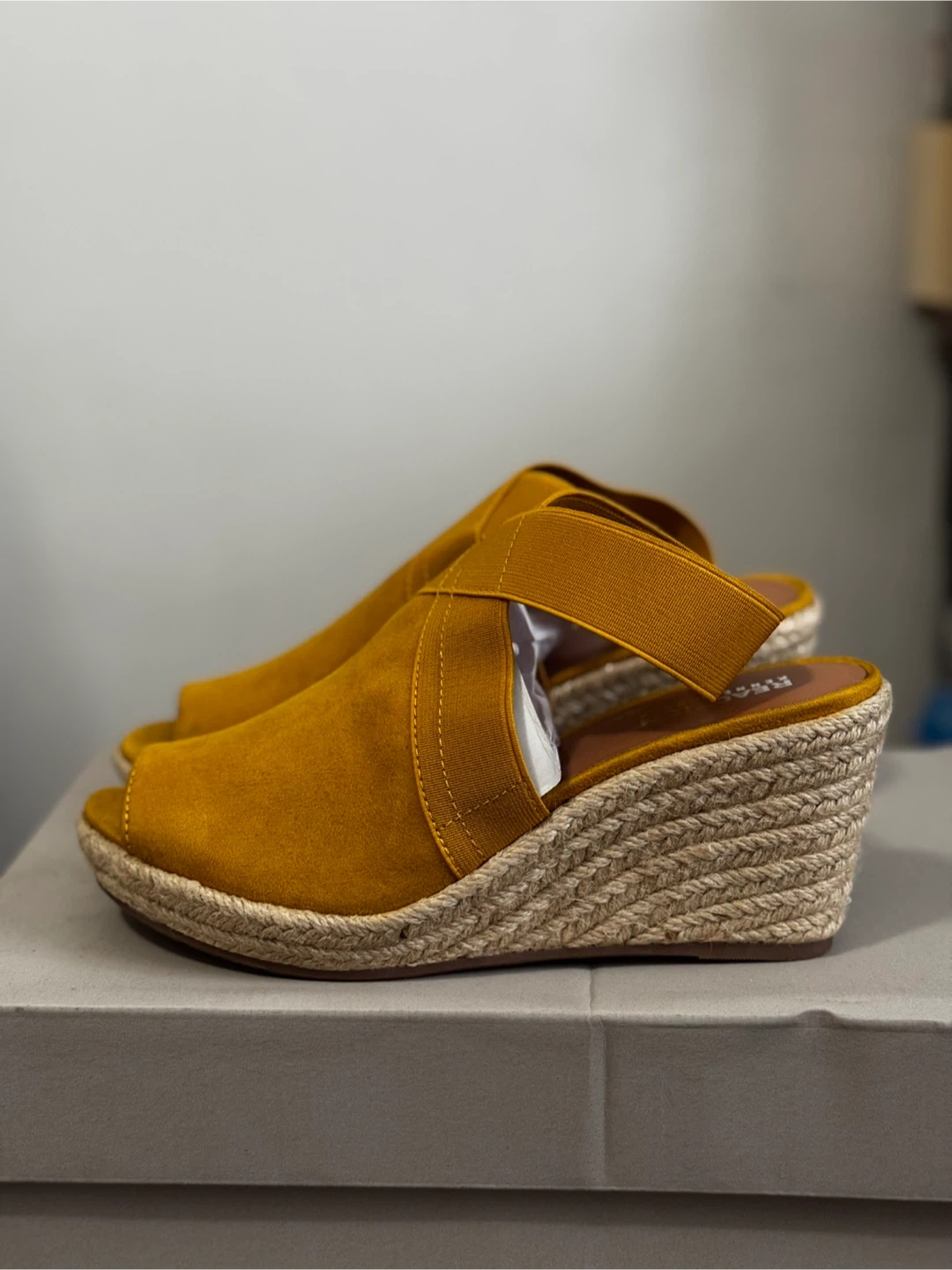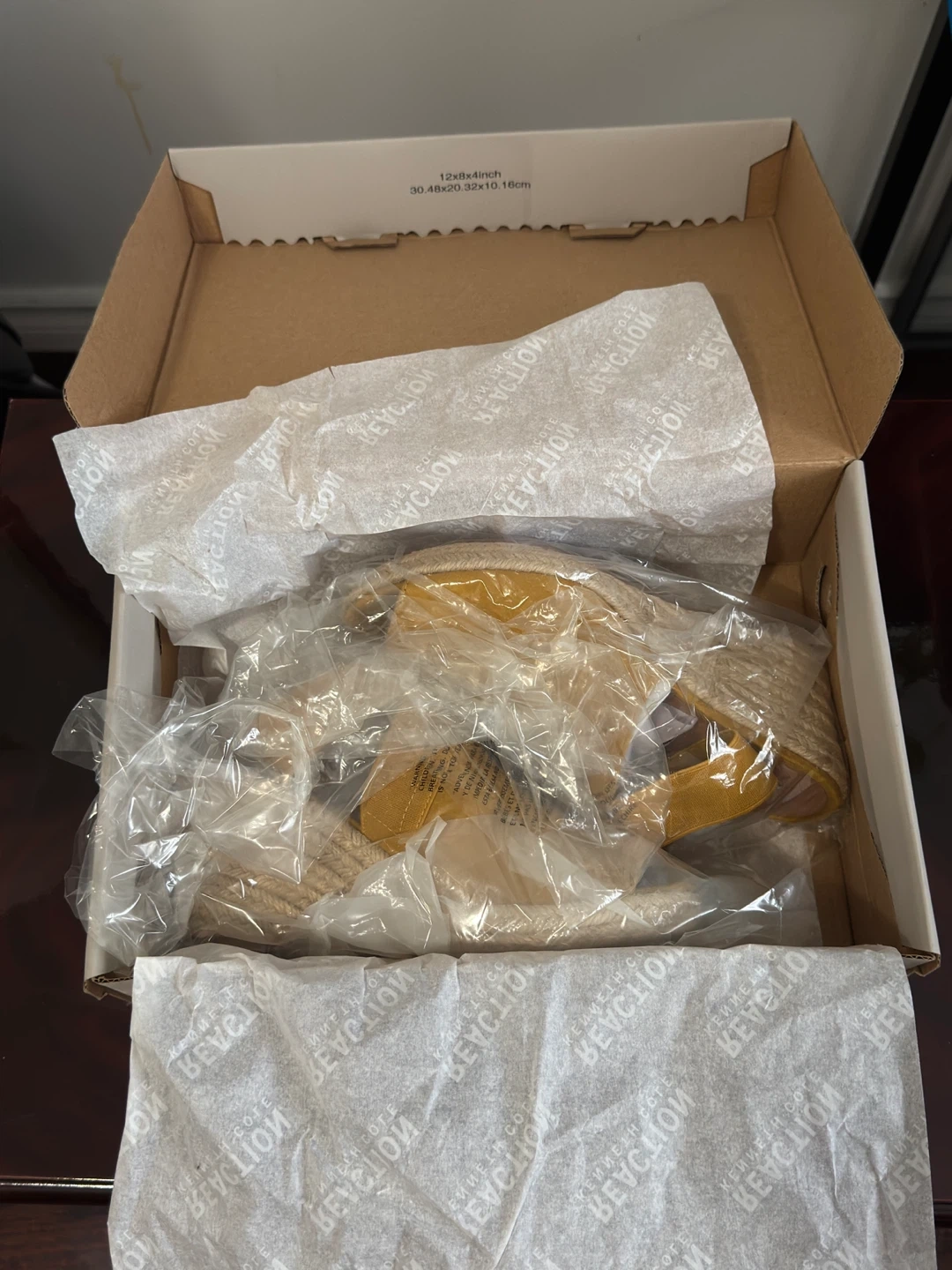 75These are a pair of Kenneth Cole Reaction 'Carrie' wedge sandals in a marigold yellow colour! They're a women's size 6.5 and come in the original box