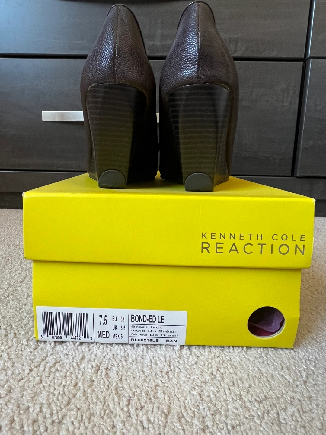 Brown wedge heel shoes. Size 7.5. In good condition. Comes with original box.
