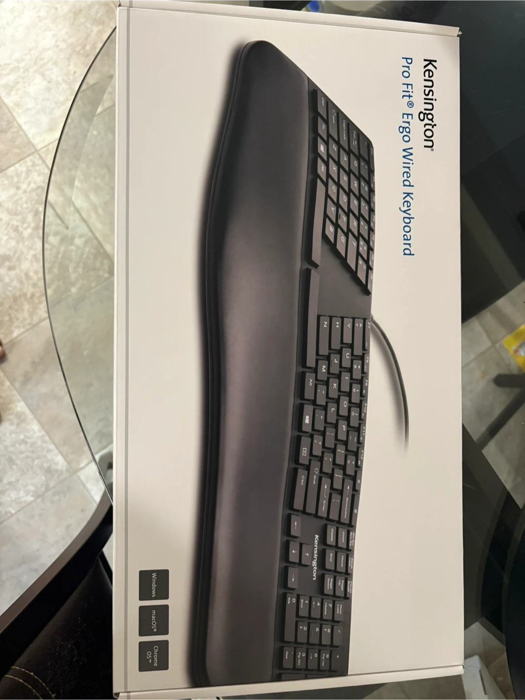 Selling a brand new, still in box Kensington Pro Fit Ergo Wired Keyboard. It features split and sloped keys with a built-in wrist rest for maximum comfort. It's designed for Windows, macOS, and Chrome OS. Quiet keys make for a peaceful work environment. Brand new with the original box