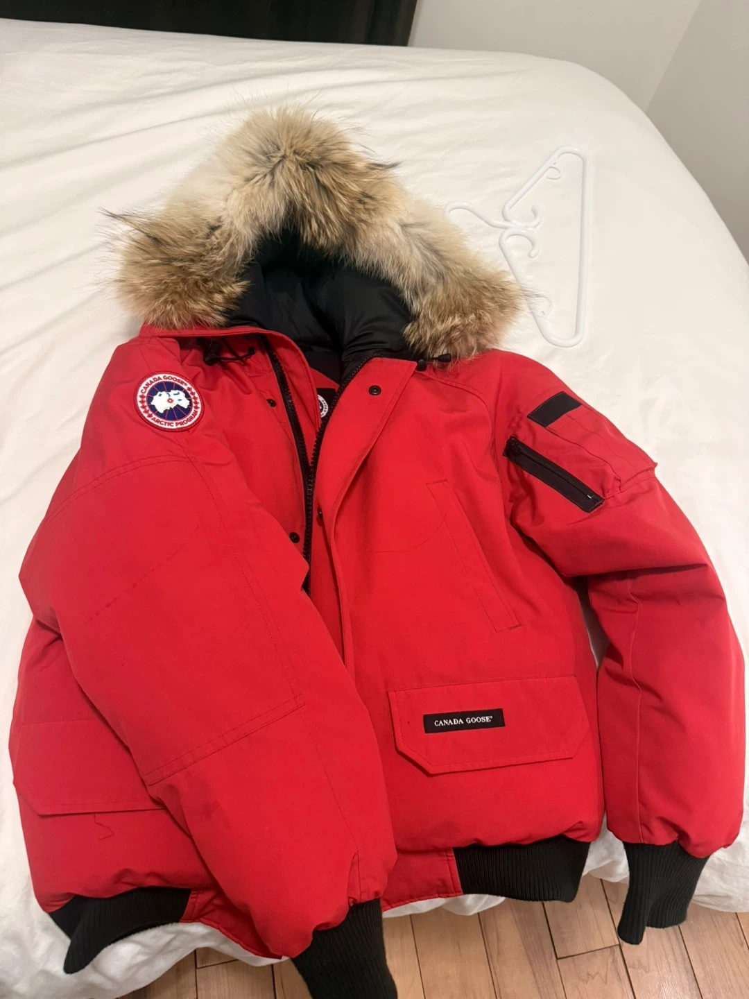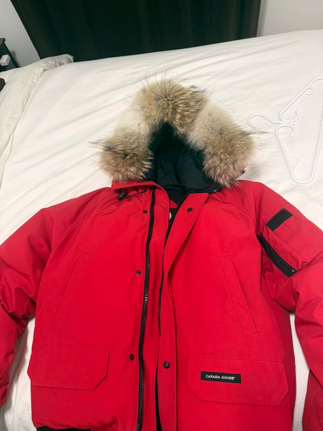 Selling a Canada Goose chilliwack bomber size medium. It's perfect for the cold weather and has a fur-trimmed hood to keep you extra cozy!