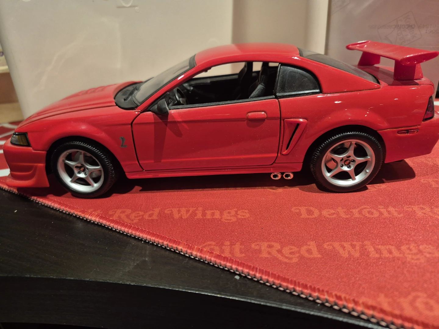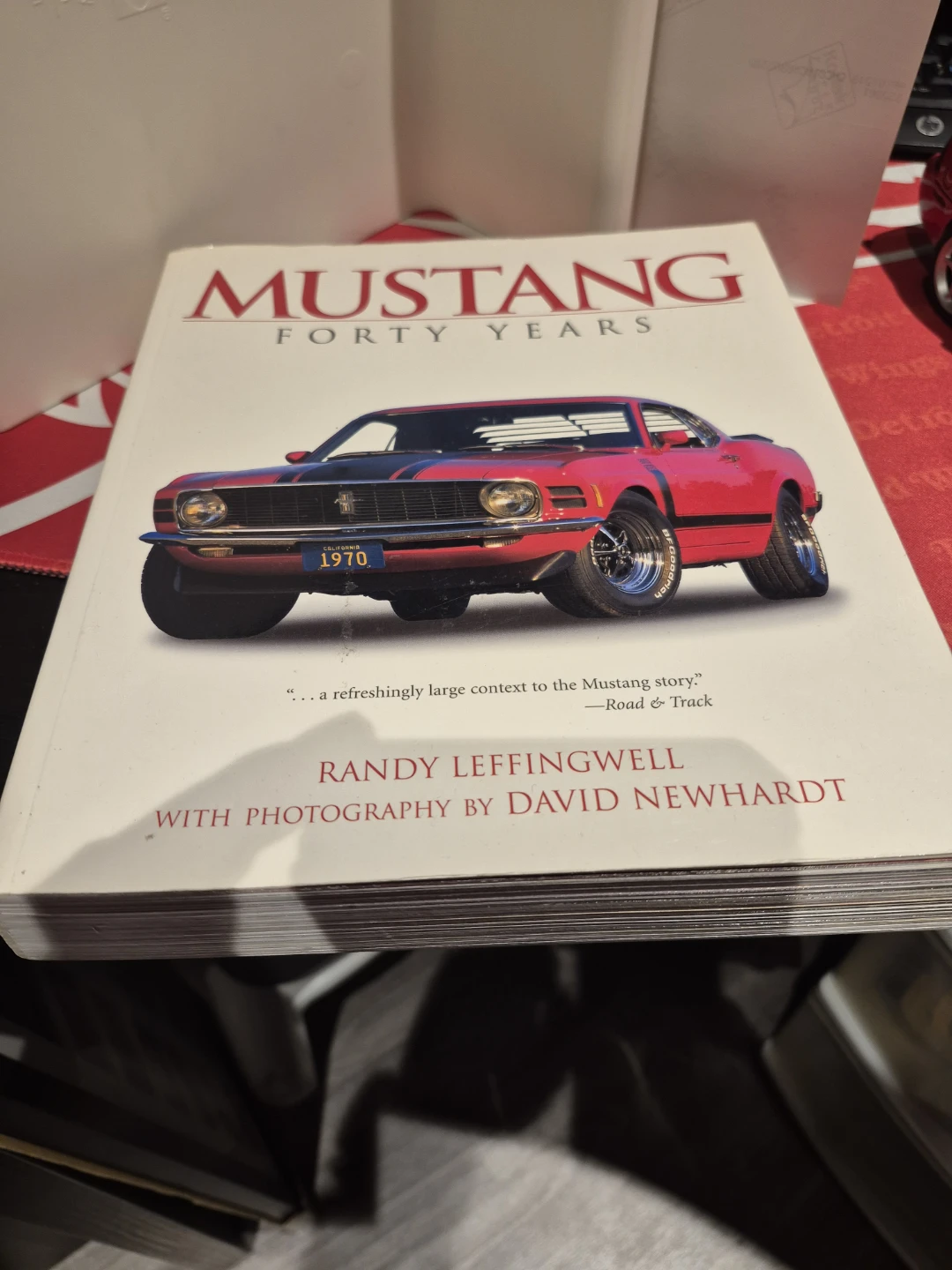 Collection of Ford Mustang diecast model cars, including a yellow 1994 convertible and a blue Shelby GT500. Also includes the "Mustang: Forty Years" book by Randy Leffingwell. Great for any car enthusiast!