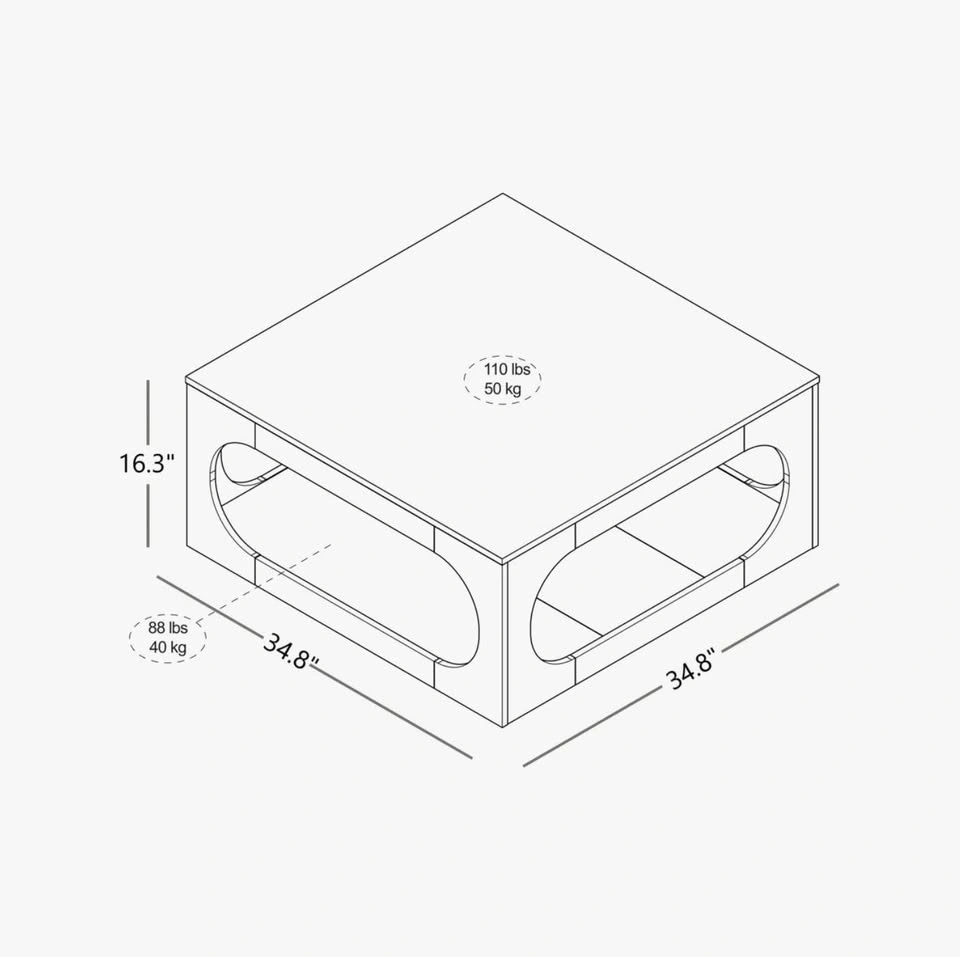 · Large square tabletop for decor, books, or drinks