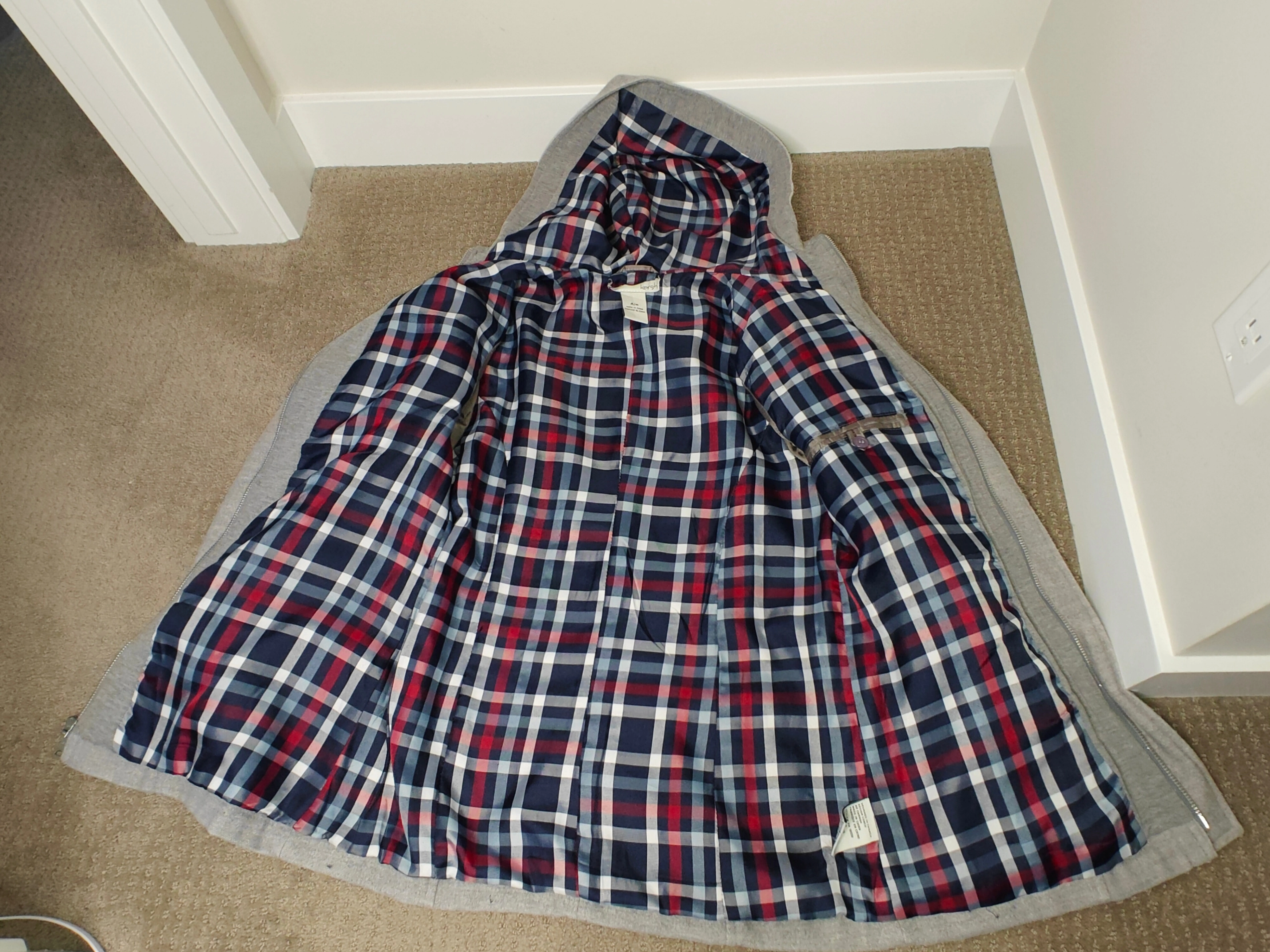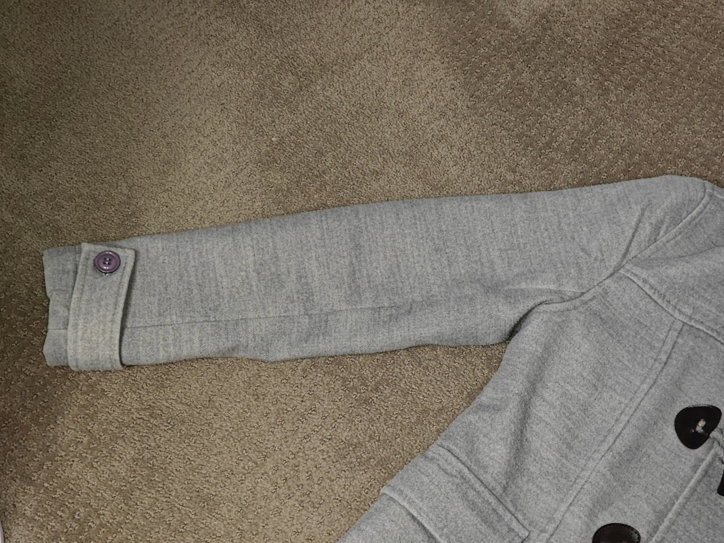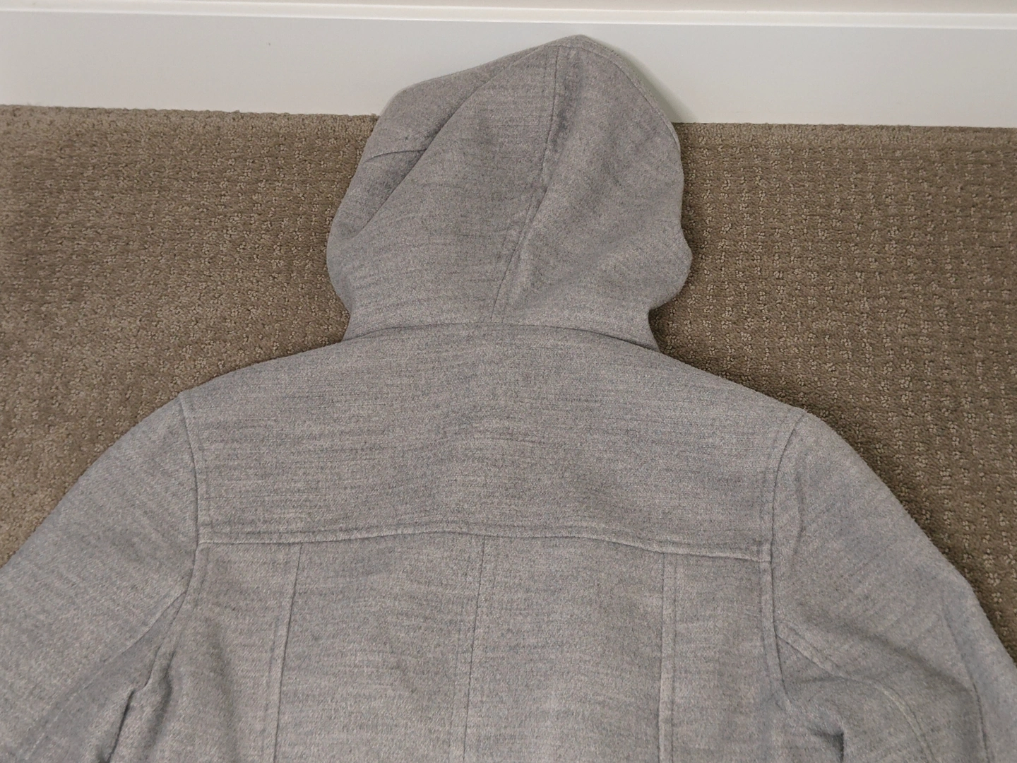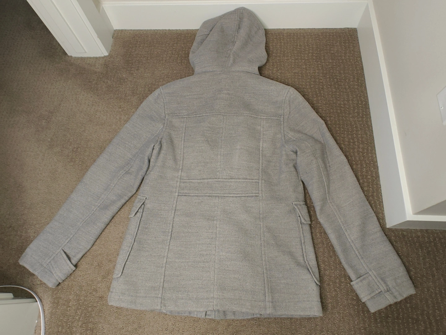 I am selling a Kersh Women Grey Hooded Duffle Coat / Peacoat Jacket with Plaid Lining in used, good condition. This is a stylish and warm women's hooded coat from the brand Kersh. It’s a great piece for fall and milder winter weather. The classic duffle coat design is elevated with a fun, vibrant red, white, and navy plaid lining that shows nicely in the hood and when the coat is open. The coat is in good, used condition with no visible issues or damage. It has been well-cared for and is ready for its new owner. Key Features & Style: * Colour: Light Heather Grey / Oatmeal with a textured "marled" look. * Lining: Vibrant navy, red, and white plaid. * Closure: Full zip-up front, covered by a placket with four decorative toggle buttons (dark brown with horn-style toggles and loops). * Hood: Attached hood with the plaid lining. * Pockets: Two large, functional flap pockets at the hips and one small one on the inside. * Sleeves: Long sleeves cuffs secured by a single purple button. * Fit: Mid-thigh length (depending on your height). * Designed in Canada * Style # KA 18000 * Machine Washable Measurements (Approximate) * Size: Women's Medium * Sleeve (Shoulder to Wrist): 24" * Shoulder to Shoulder: 16" * Bust (pit-to-pit): 18" * Total Length (Bottom Collar to Bottom Edge): 26" Shell Fabric Material Content (as per tag): * 89% Polyester * 10% Viscose * 1% Spandex Lining Fabric Content (as per tag): * 100% Polyester Comes from a pet and smoke-free environment. Pickup in Mount Pleasant (NW Calgary)