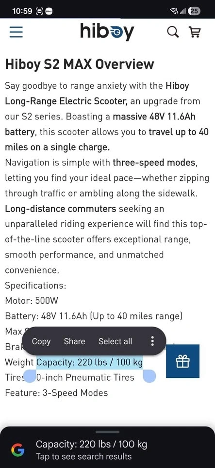 Hiboy S2 Max Electric Scooter - Like New + Free AirTag