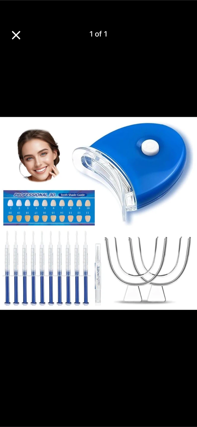 This tooth whitening set includes blue light, 10 whitening gel, 2 mouth trays, and 1 whitening pen to meet your various needs.