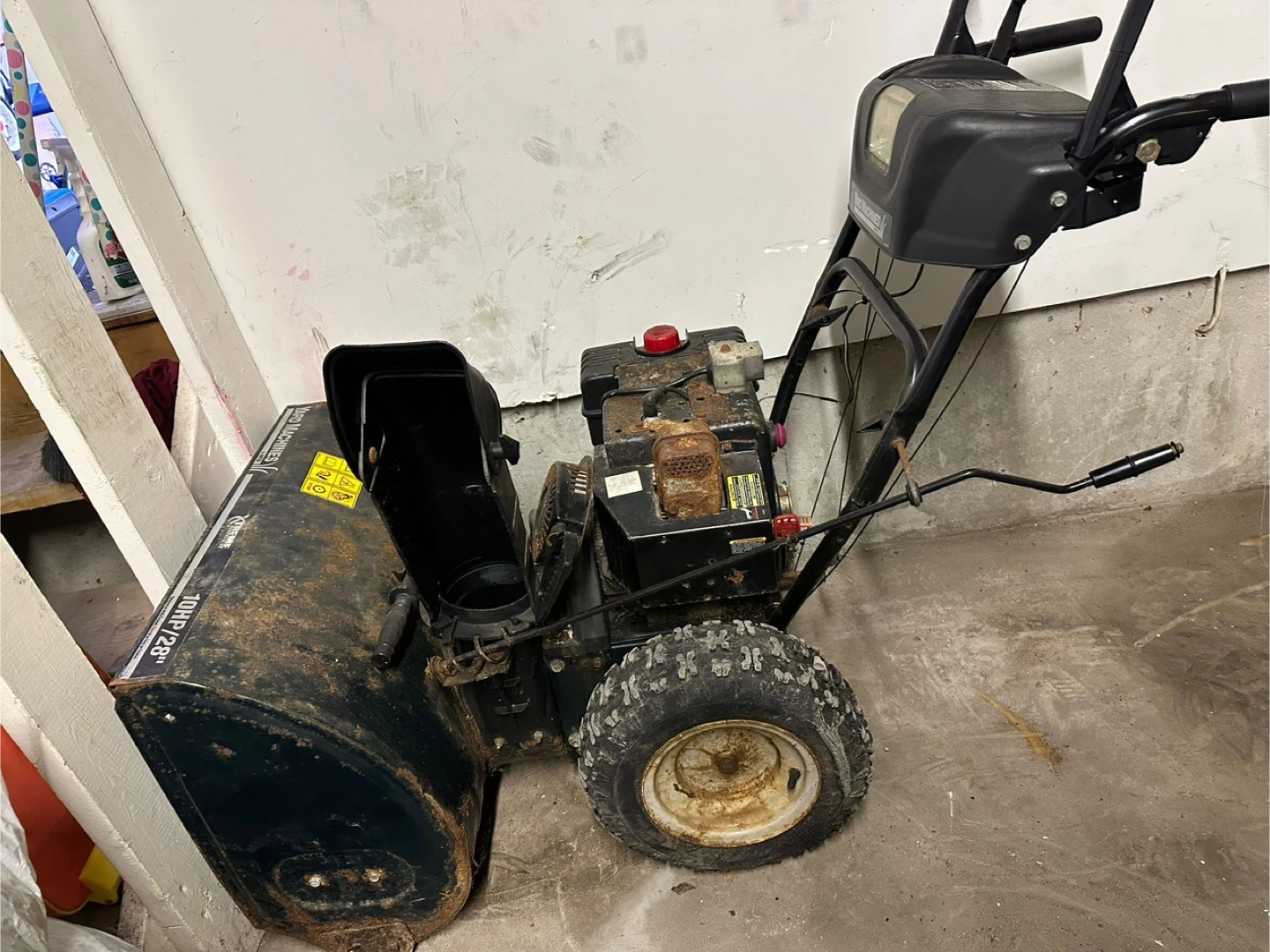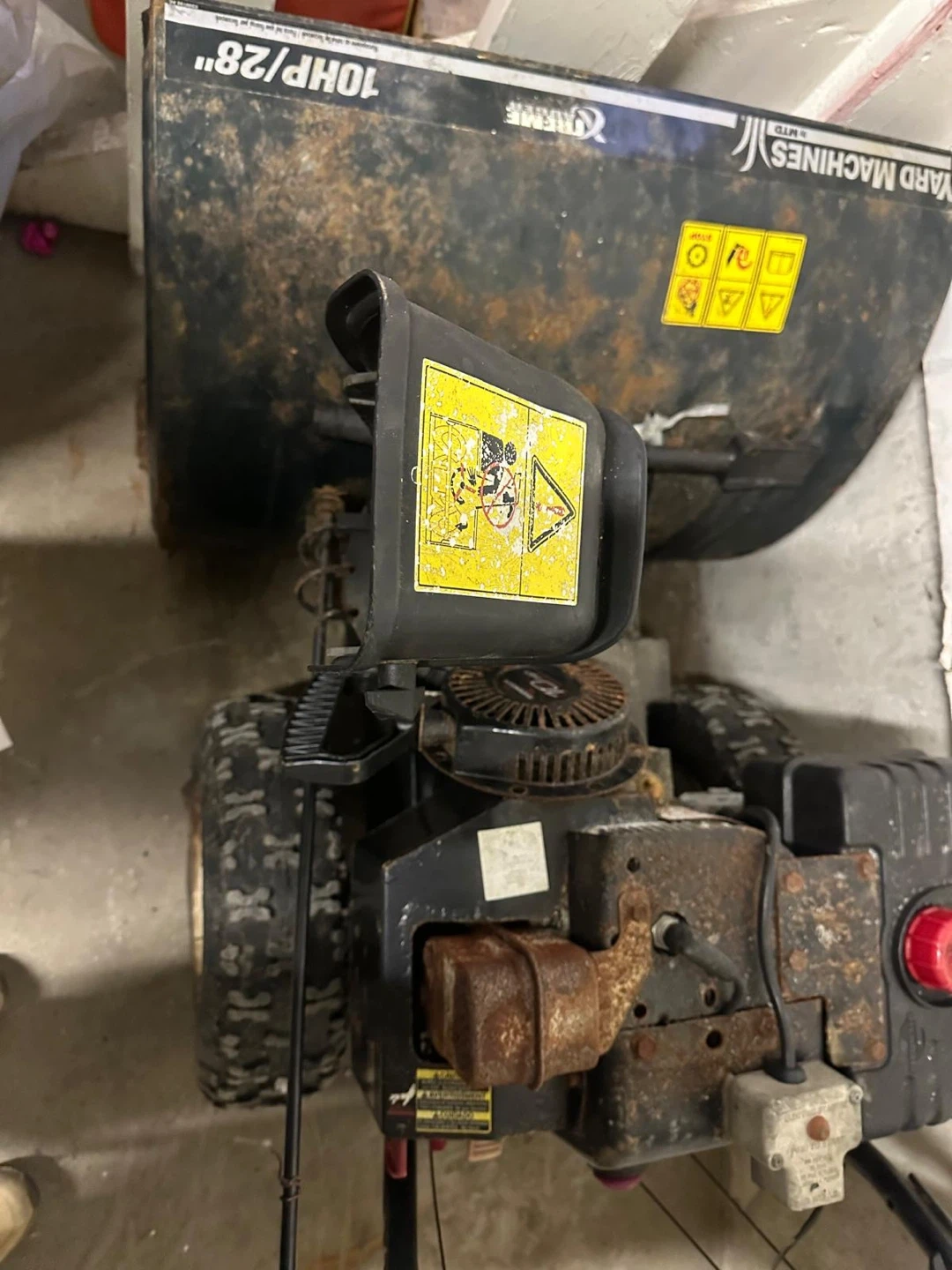 Yard Machines snow blower with a 10-horsepower engine and 28-inch clearing width. It's a reliable machine for clearing driveways and sidewalks.