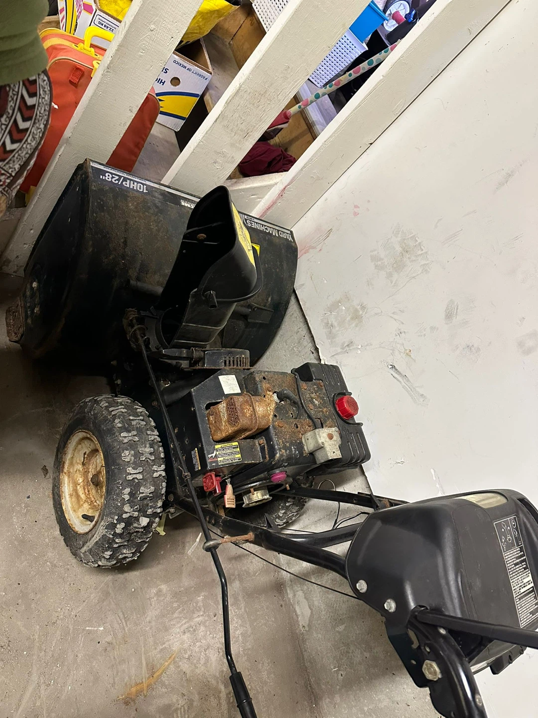 Yard Machines snow blower with a 10-horsepower engine and 28-inch clearing width. It's a reliable machine for clearing driveways and sidewalks.