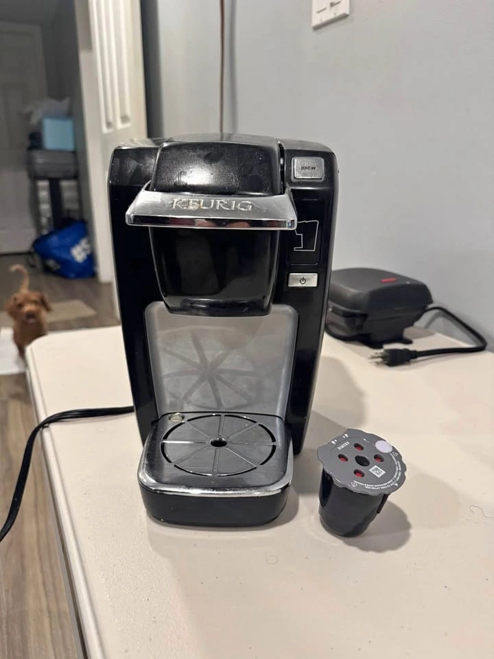 Introducing the Keurig B31 Black Mini Plus Single Serve Coffee Maker Brewing System, perfect for coffee lovers who want a quick and easy way to enjoy their favorite hot beverage. This pod coffee machine by Keurig is designed to brew coffee in no time, and its compact size makes it ideal for use in small kitchens or offices. Featuring a red color and the B31 model, this coffee maker is a reliable and efficient choice for those who want to enjoy a cup of coffee without the hassle of traditional brewing systems. Its brand, Keurig, is known for producing high-quality coffee products, and this machine is no exception. Whether you're at home or at work, this coffee maker is the perfect addition to your kitchen.