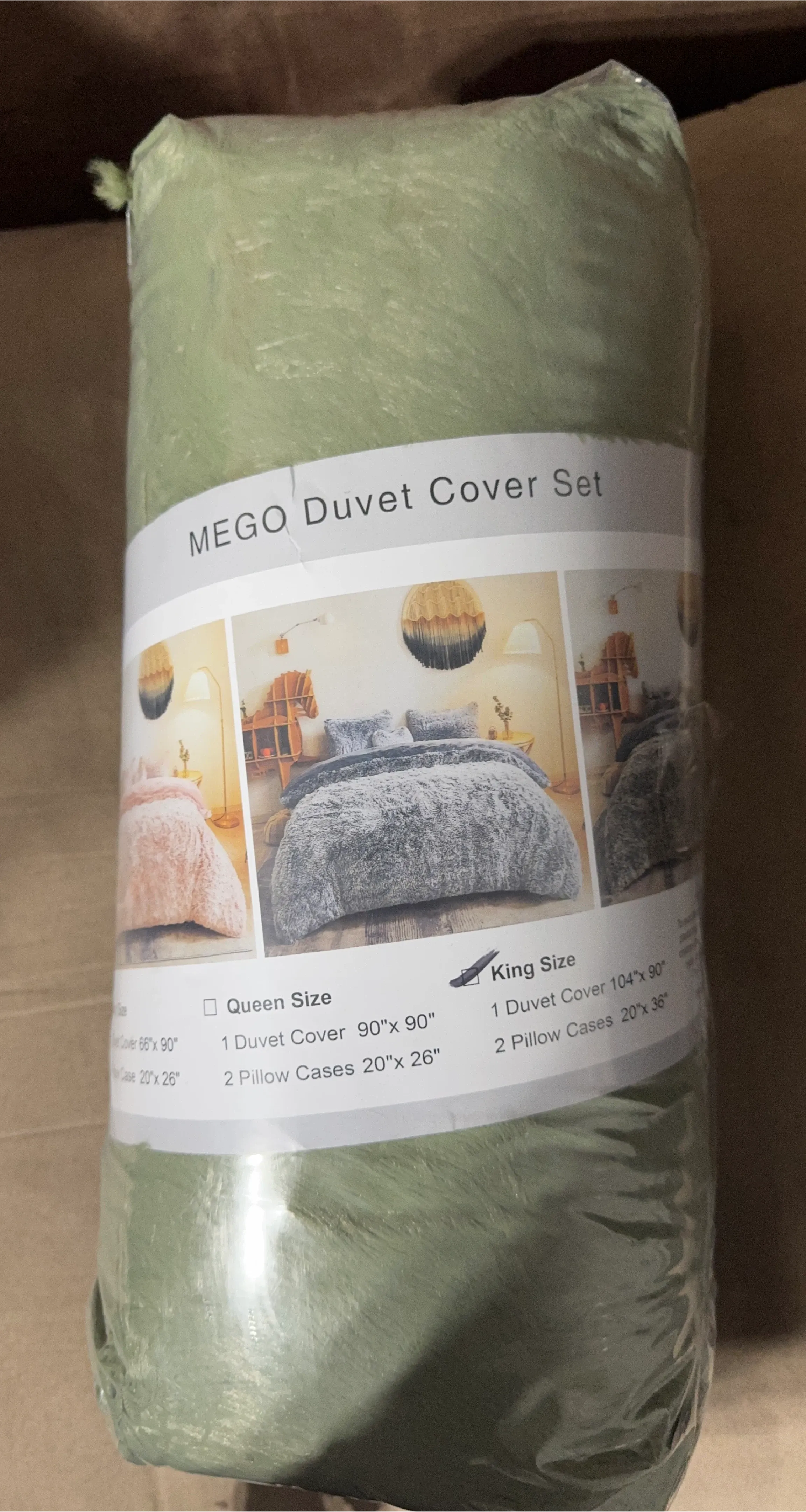 MEGO King Size Duvet Cover Set. Includes 1 duvet cover (104"x90") and 2 pillow cases (20"x36"). This soft, fuzzy bedding set will add a cozy feel to your bedroom!
