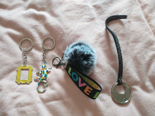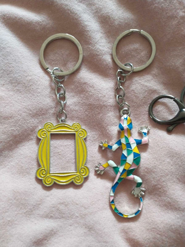 15Jennifer Lopez bag accessory - $5 Gecko - $4 Fluff with 'love' - $3 F.R.I.E.N.D.S door frame - SOLD Pick up near Banwell and the Expressway.