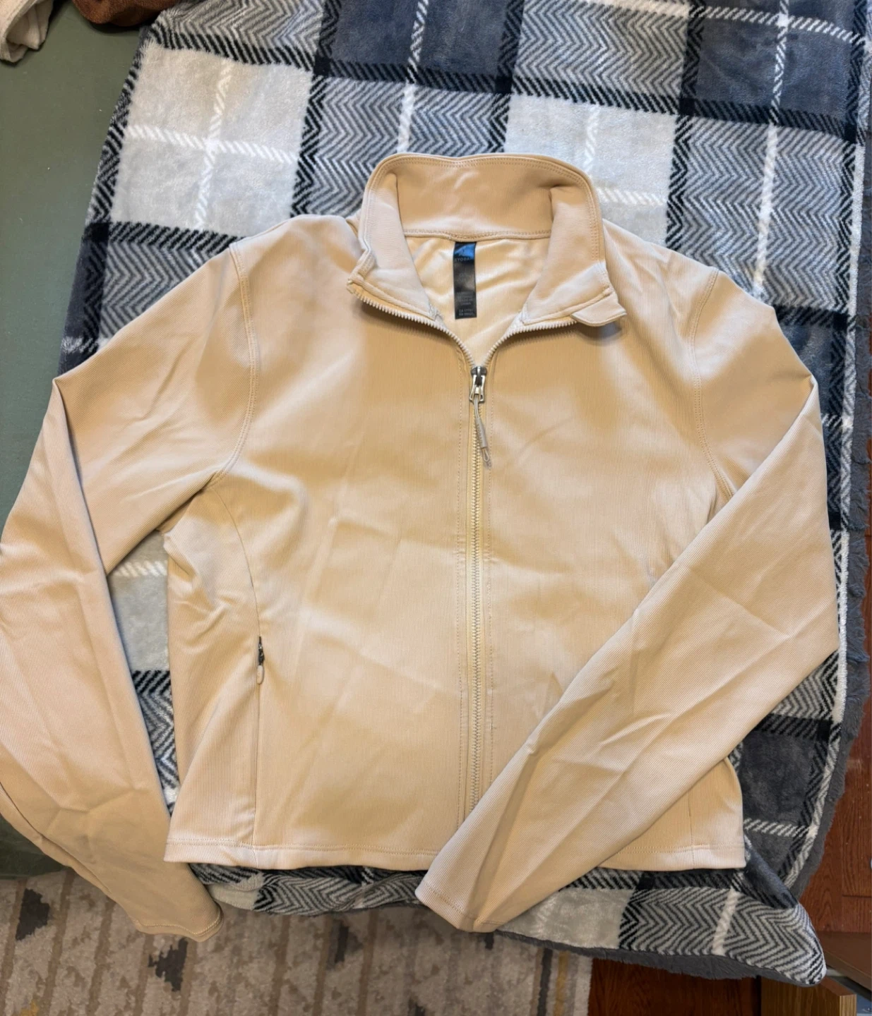 Size L beige cropped workout zip up jacket/top. Brand new without tag. Kyodan brand.