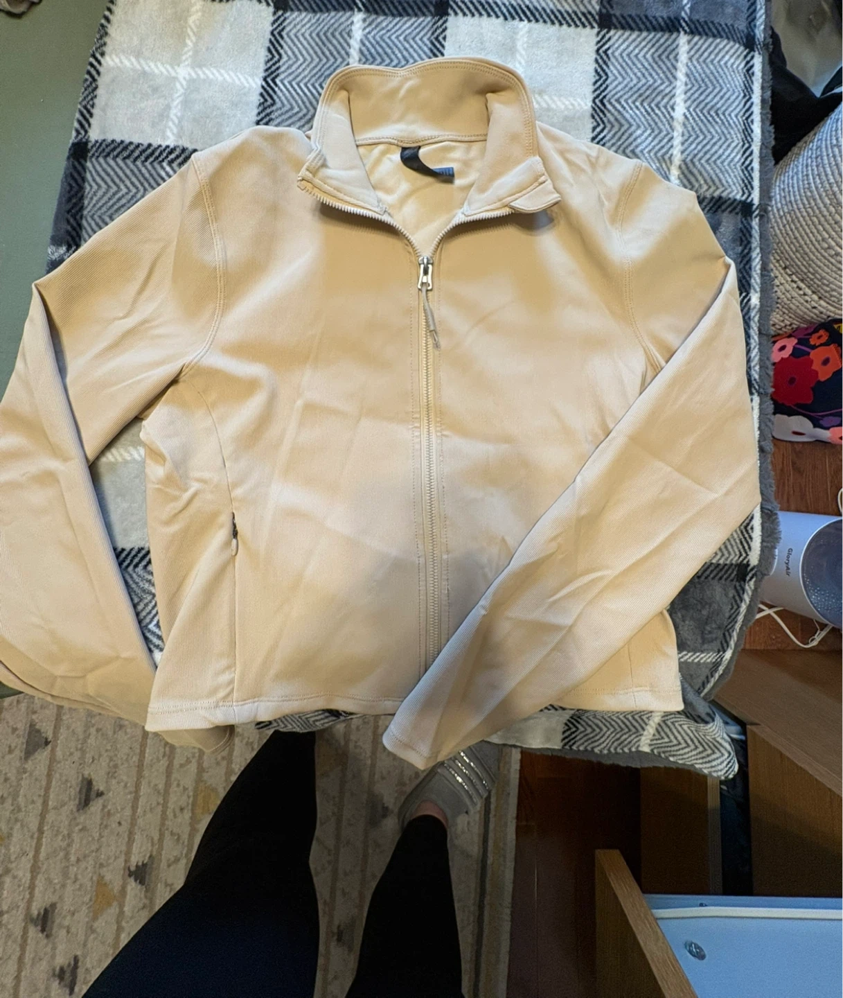 Size L beige cropped workout zip up jacket/top. Brand new without tag. Kyodan brand.